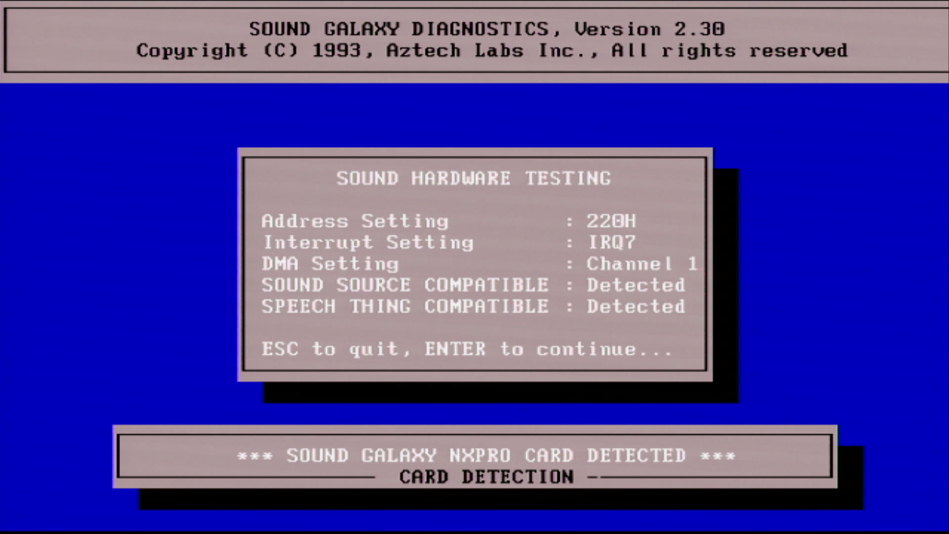 The original version 1.10 disks install below can be used to install and configure the card for DOS use. Here are some screenshots of the INSTALL.EXE utility running: