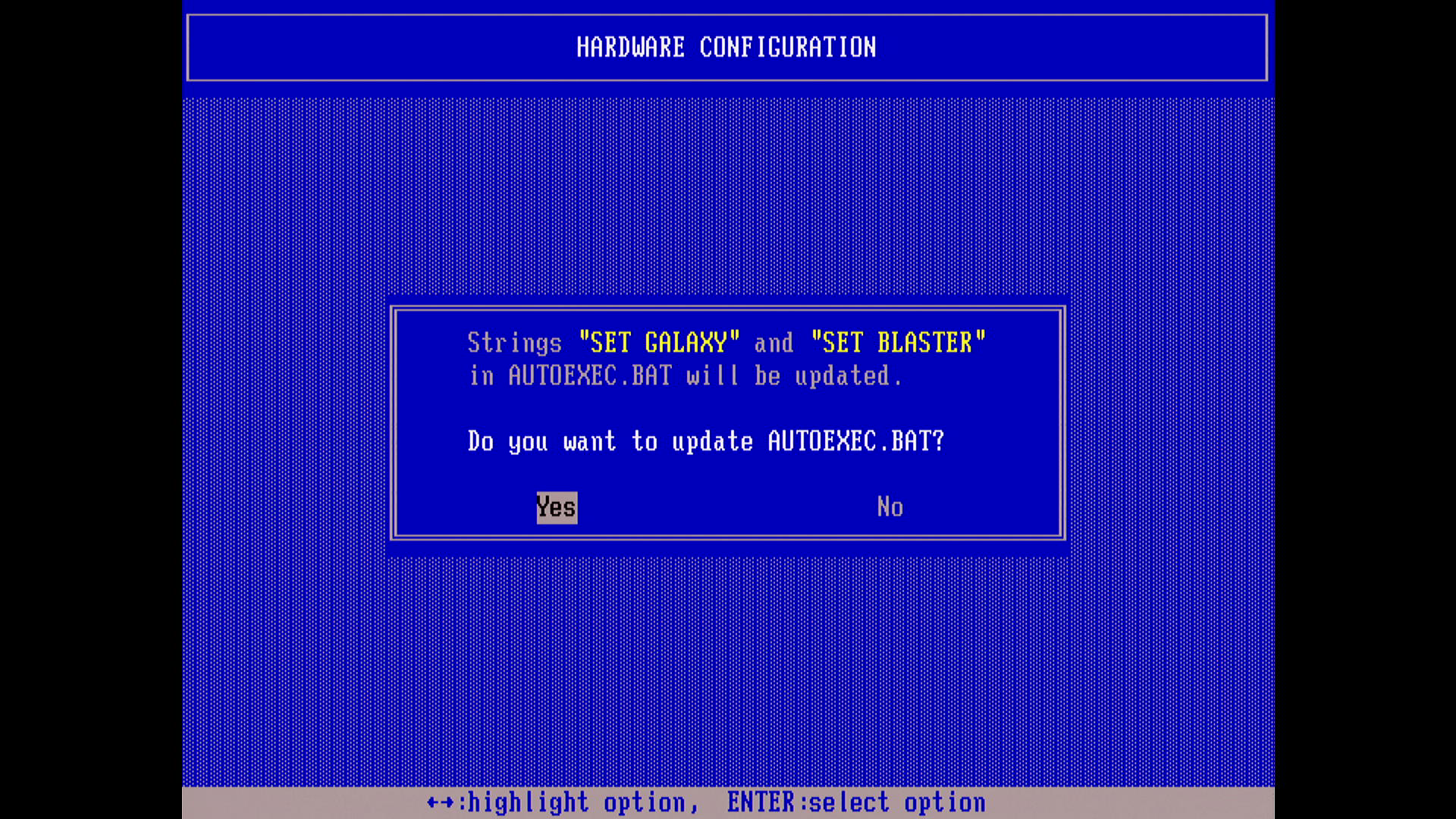 The installer adds the following 2 lines to AUTOEXEC.BAT: SET BLASTER=A220 I5 D1 T2