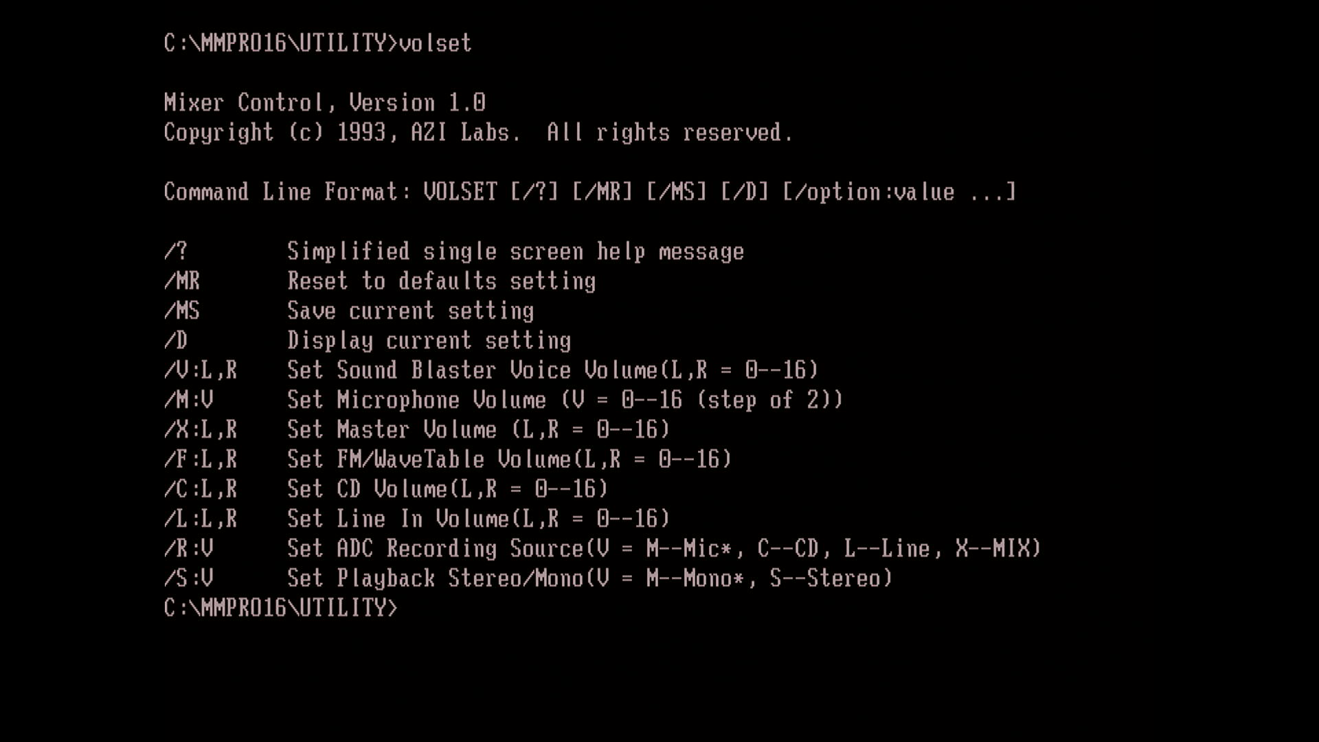 - VOLSET.EXE - Used to adjust the volume and balance on each channel
