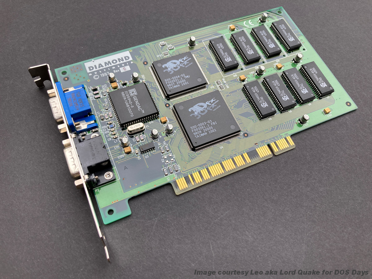 "3Dfx Interactive has seen widespread acceptance of Direct3D as a standard for game development," said Andy Keane, vice president of marketing for 3Dfx Interactive. "By combining Diamond's driver expertise with the Voodoo Graphics engine, we believe we have the ultimate Direct3D accelerator."