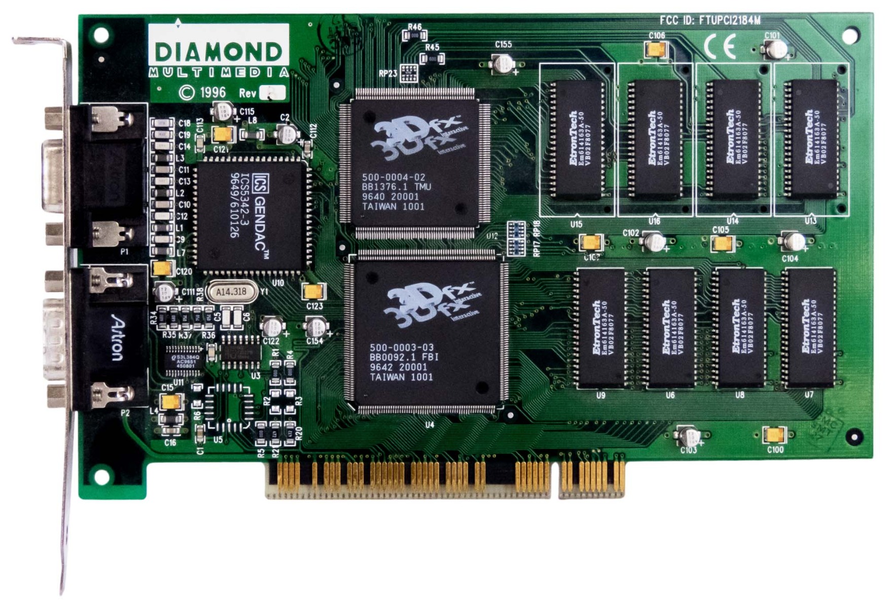 The Monster 3D was Diamond's 3DFX Voodoo 3D graphics accelerator card - the first to be released. The 4 MB of onboard memory was split into 2 MB of frame buffer and 2 MB to store textures.