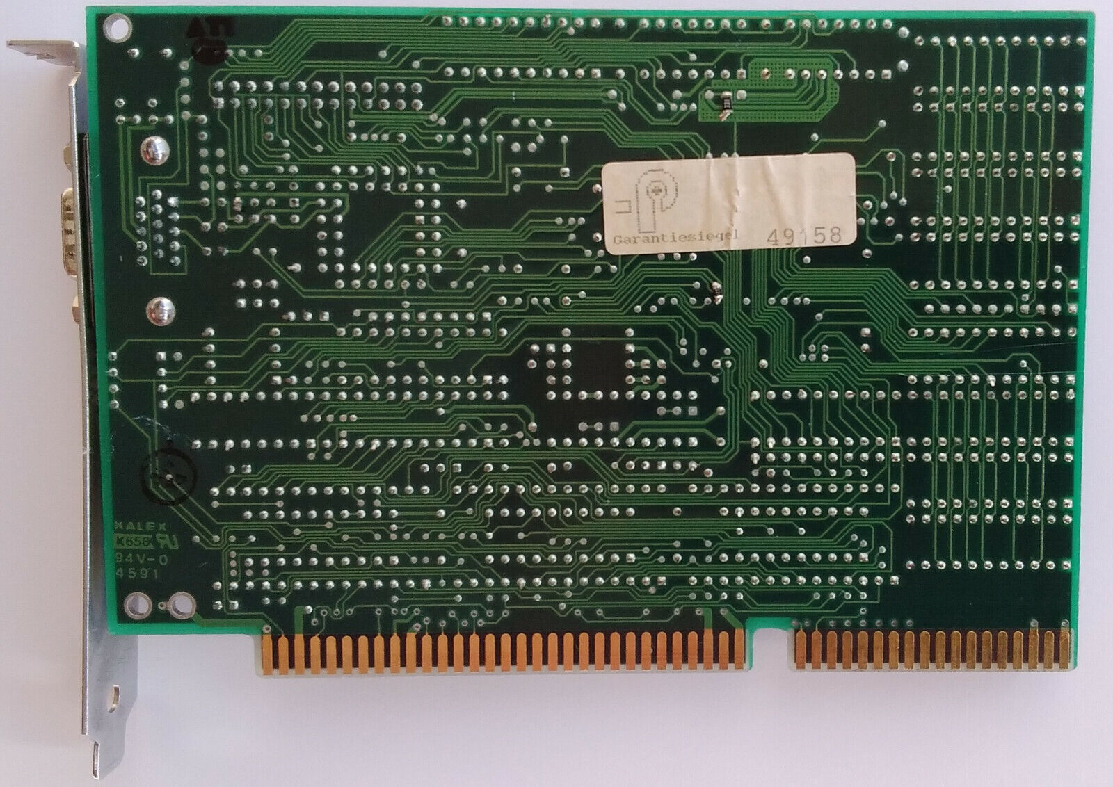 In all these cards, memory was held in two banks. Bank 0 was always populated, and was the lowermost and second-from-top pair of DRAM ICs. These are soldered-in. Bank 1 was populated on 1 MB cards only, and was the top pair and third-from-top pair of DRAM sockets.