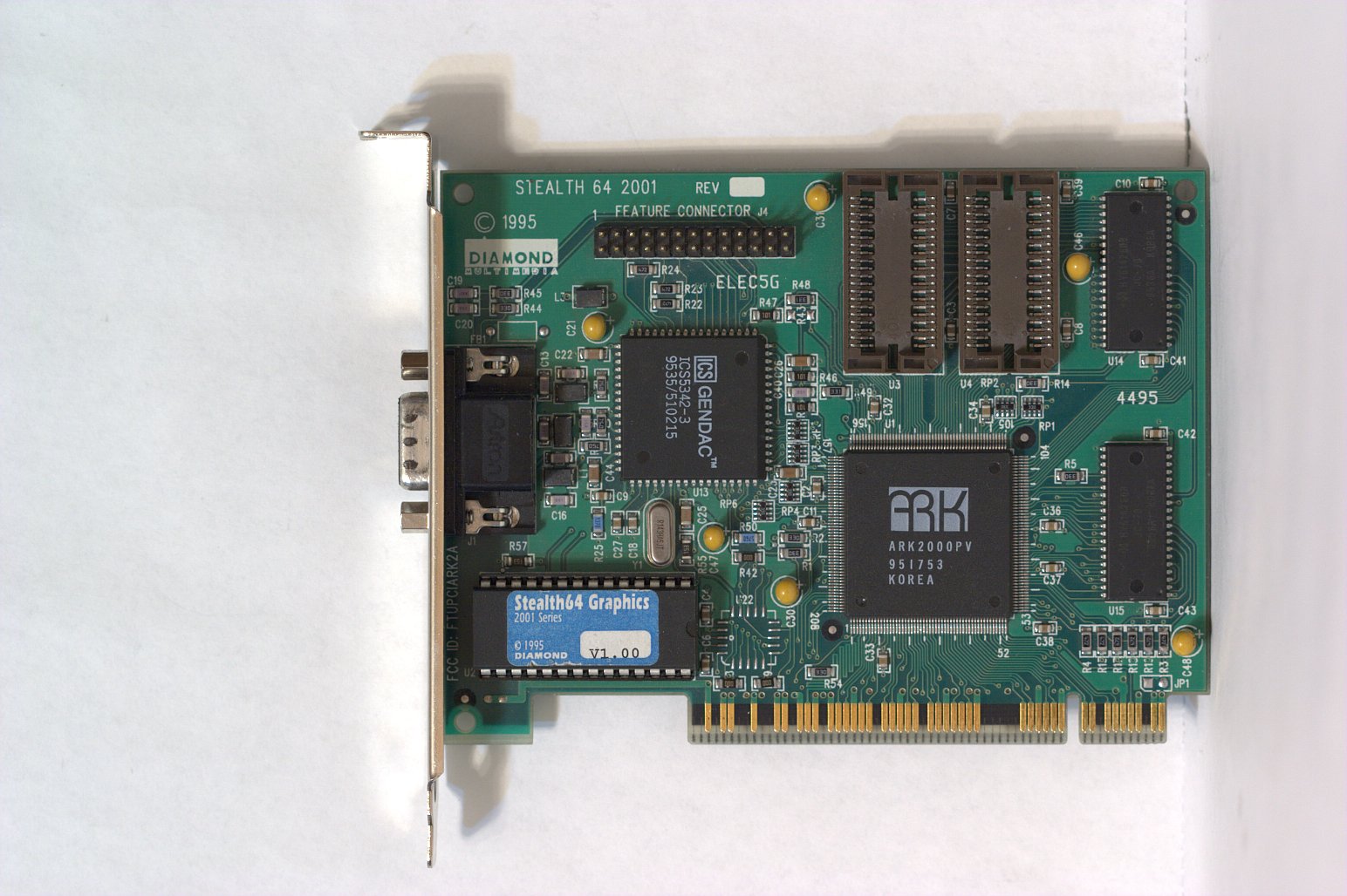 The Stealth64 2001 was based on the exceptionally fast ARK1000PV graphics chipset, along with a 32-bit memory pipeline and aggressive DRAM timing. The 8-bit RAMDAC ran at either 110 MHz or 135 MHz. The memory clock ran at 80 MHz.