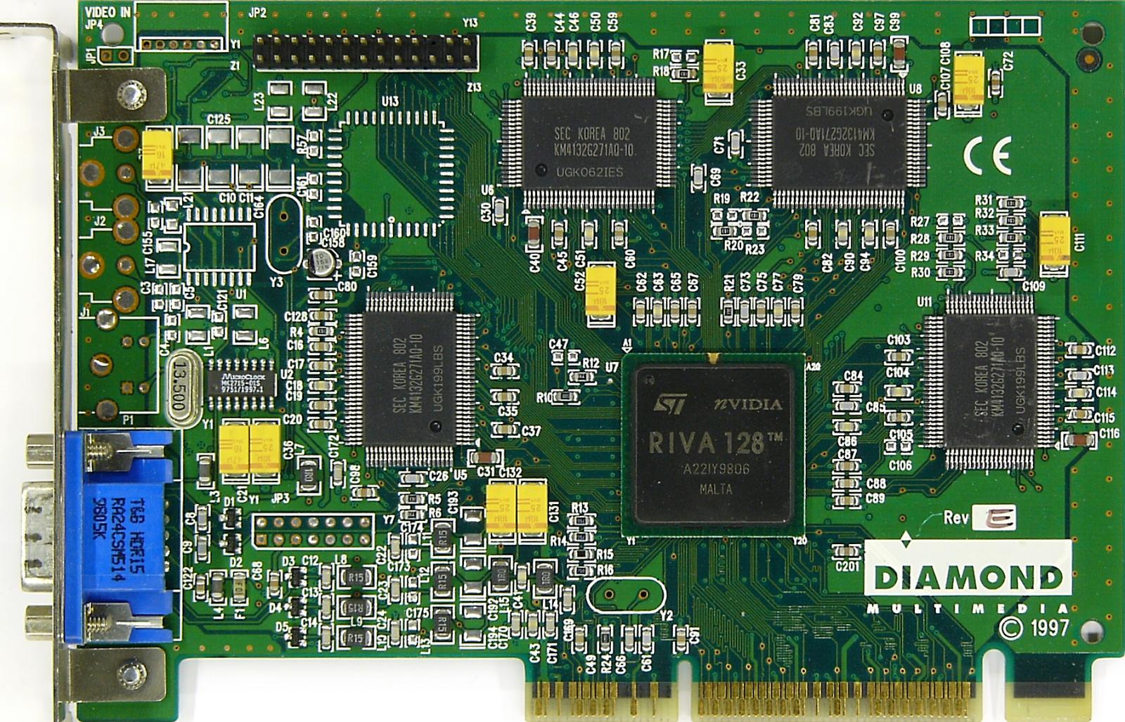 The AGP version of the card was also sold with the faster RiVA 128ZX chip.