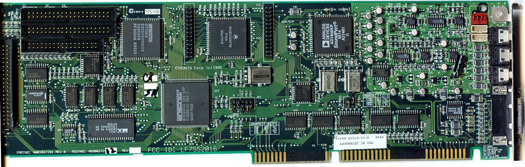 The original Soundscape was Ensoniq's first direct foray into the PC sound card market. It was a full-length ISA digital audio and 'wavetable' sample-based synthesis audio card, equipped with a 2MB Ensoniq-built ROM-based patch set comprising 317 instrument samples.