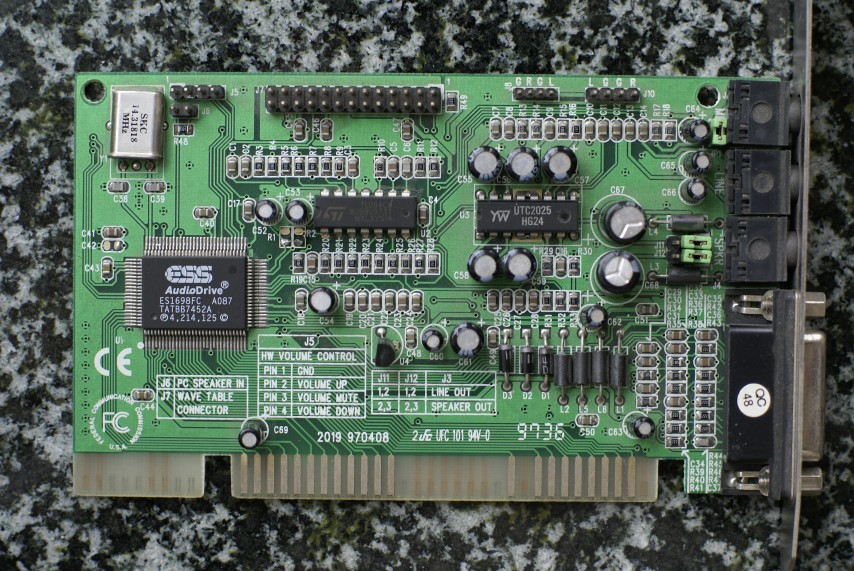 PnP ISA sound card that uses the ESS ES1878S audio chip.