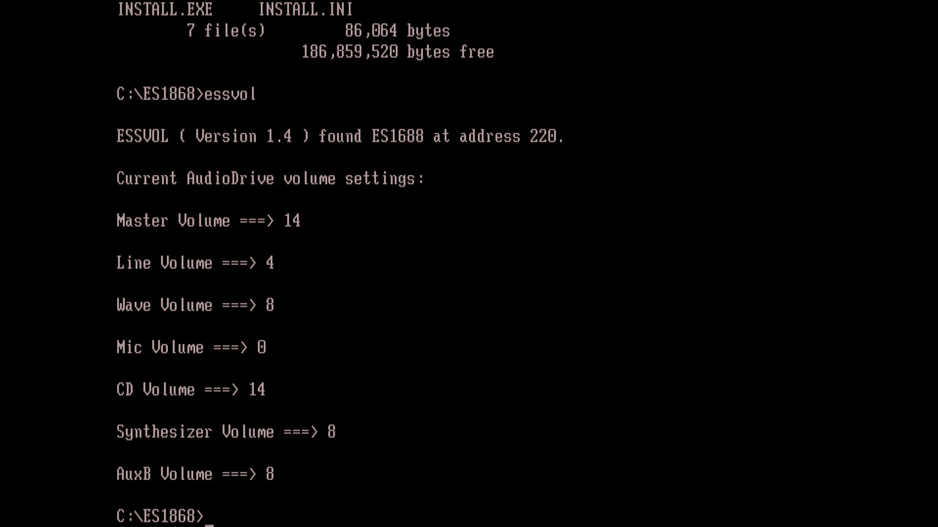 The DOS utility ESSCFG.EXE is used to initialise the card and then it exits (it doesn't remain in memory which is good). ESSVOL.EXE can be used to set the volume levels including those for MIDI and CD Audio.