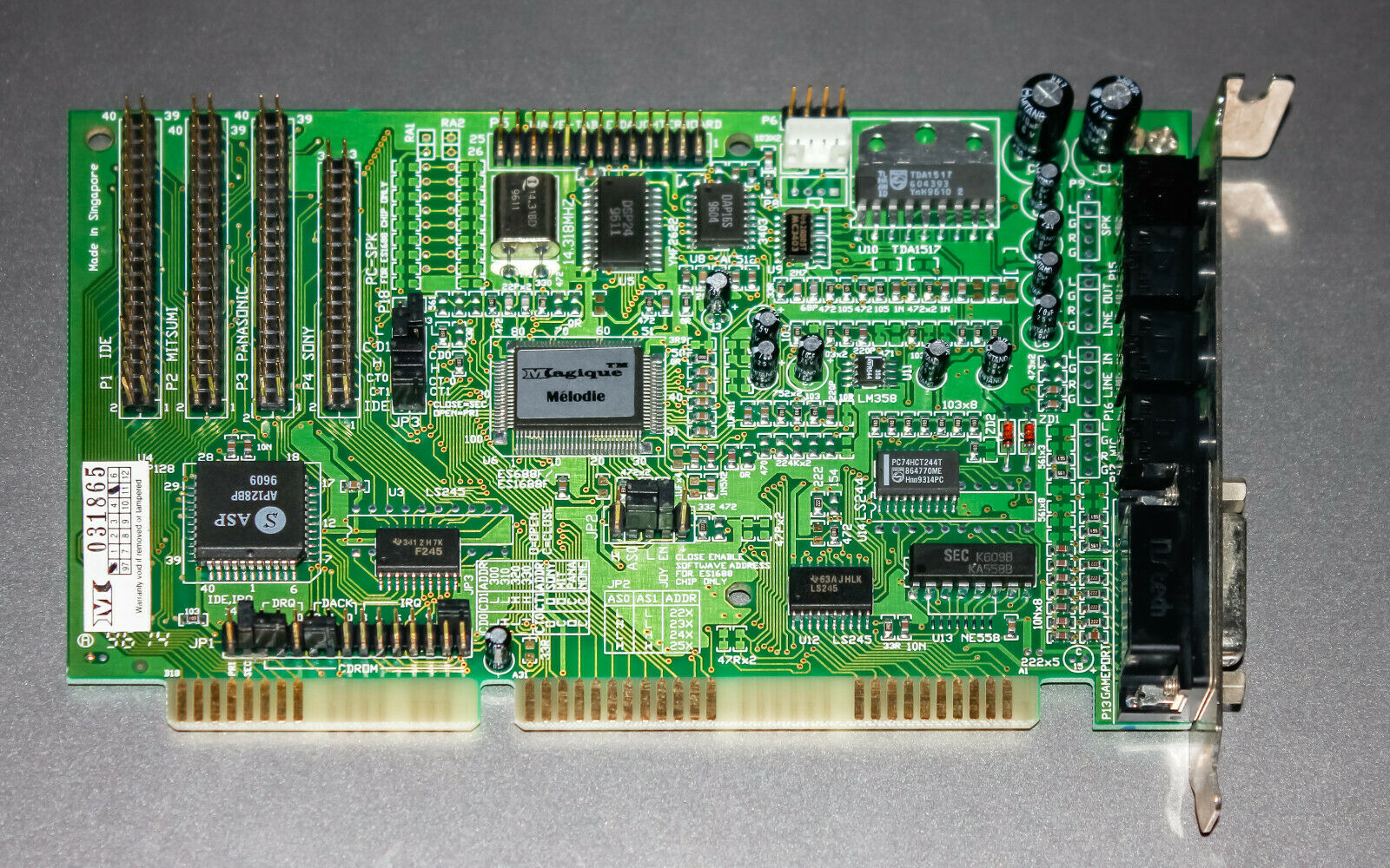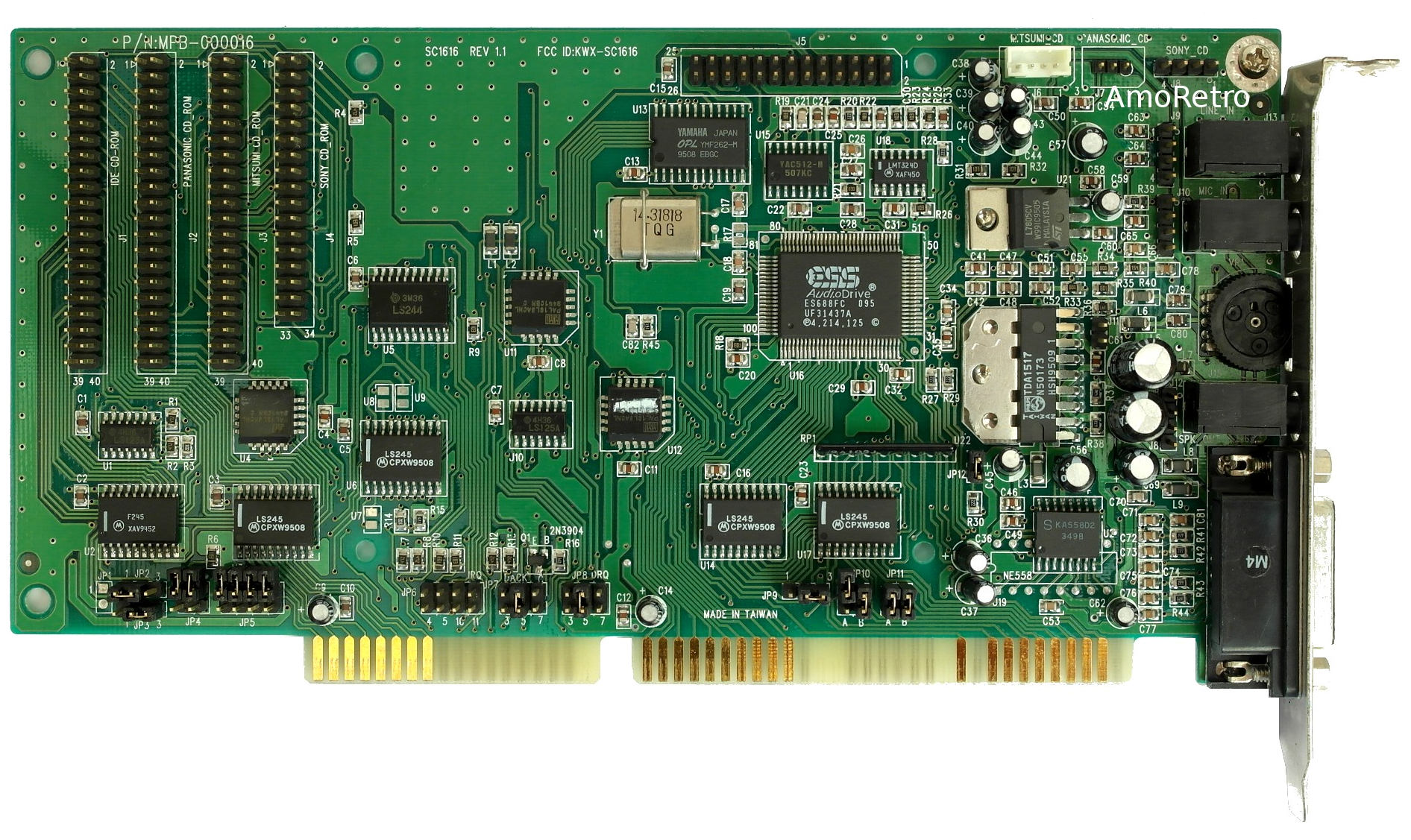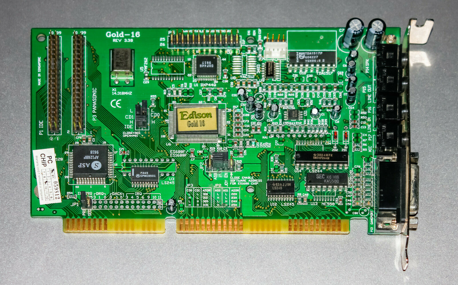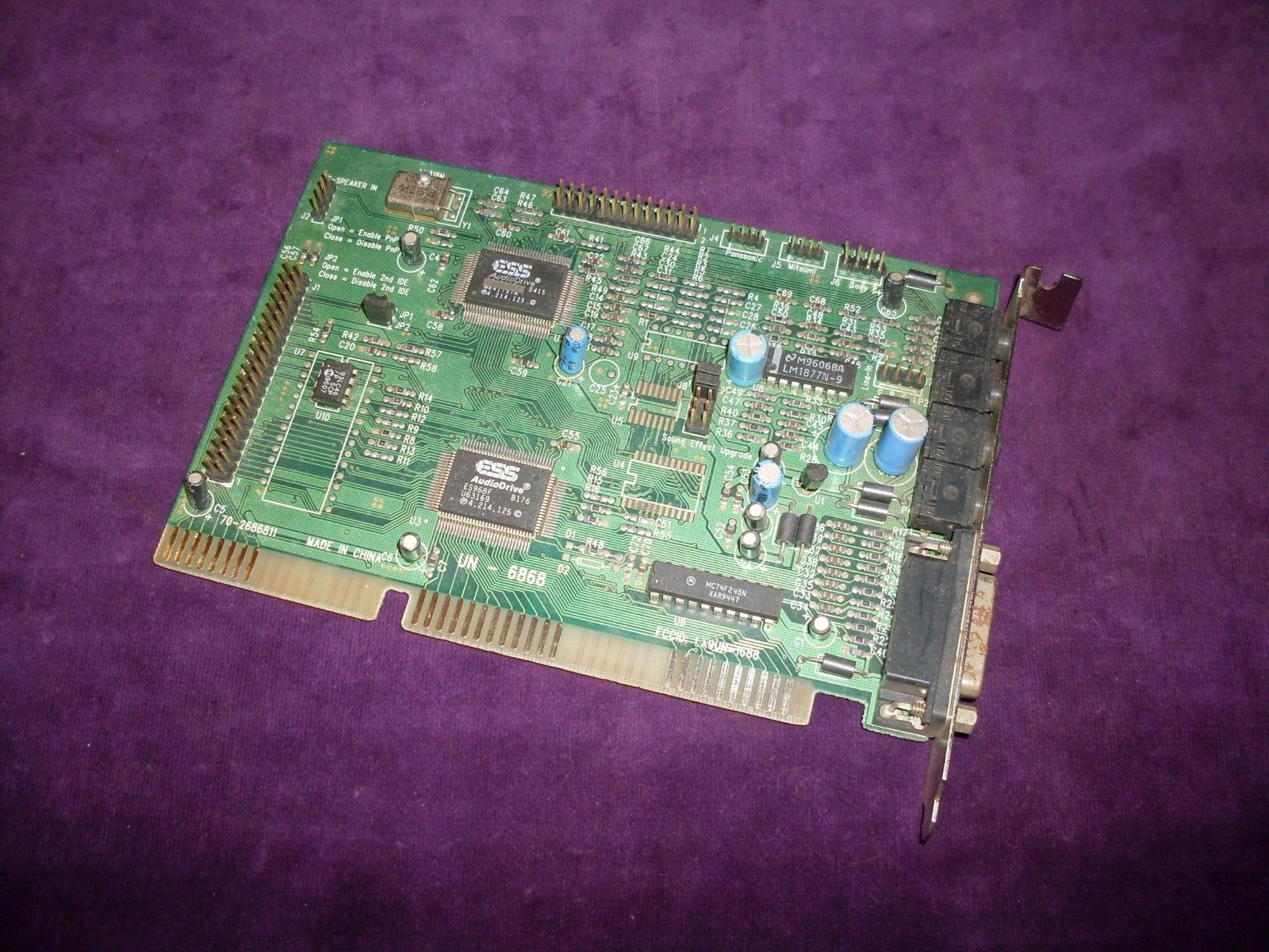 The ES1868 card is low-noise card that supports up to SB Pro 2.0 gaming, considered one of the best DOS gaming cards. It has an IDE header onboard as well as a wavetable header which does not suffer from any bugs like SB card hanging notes bug.