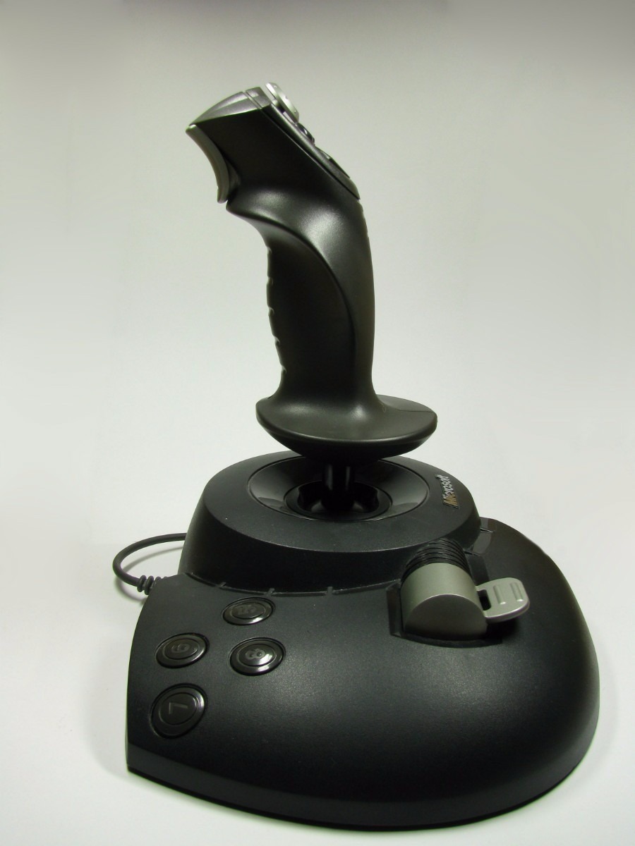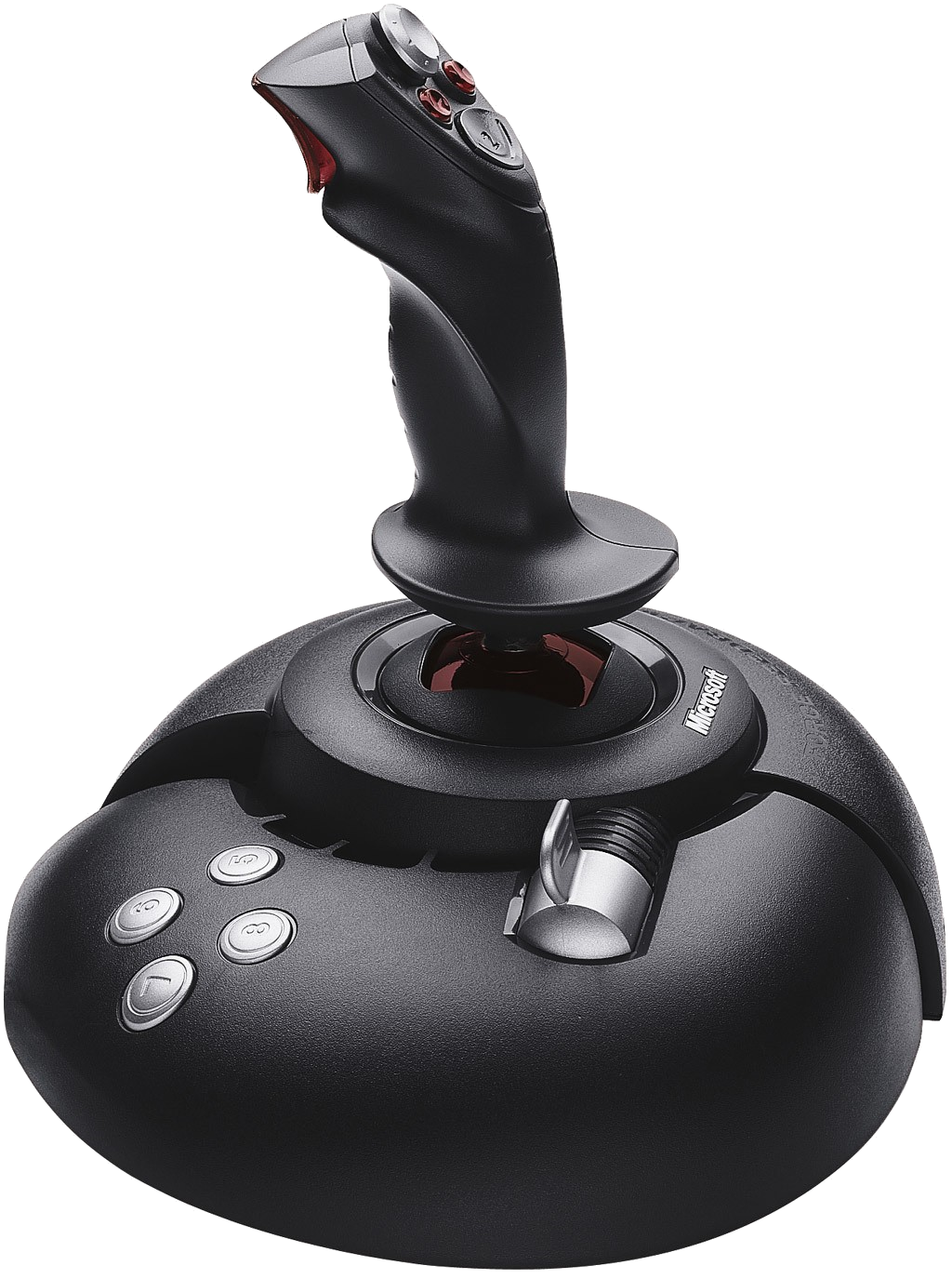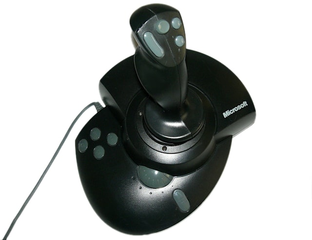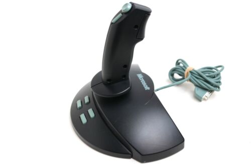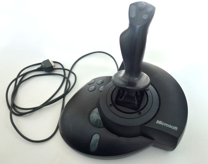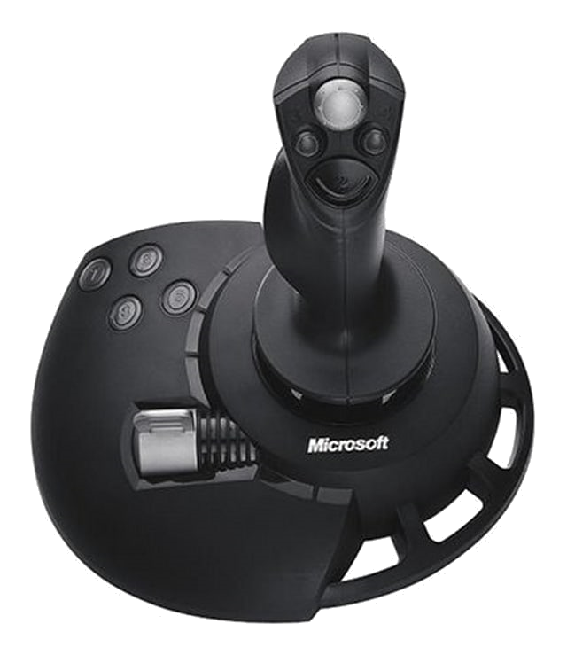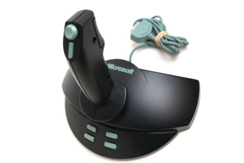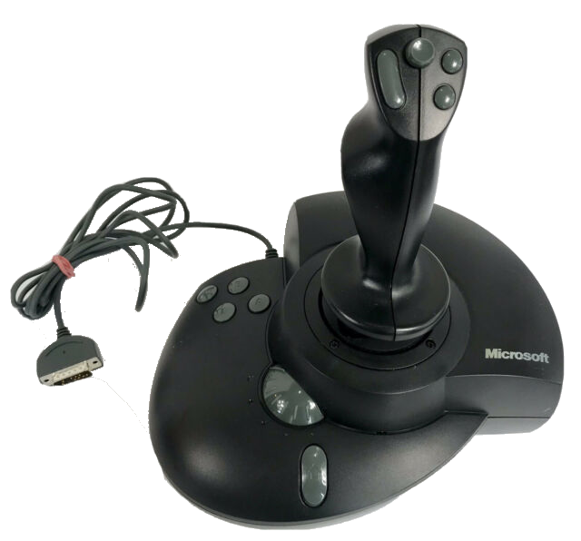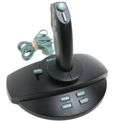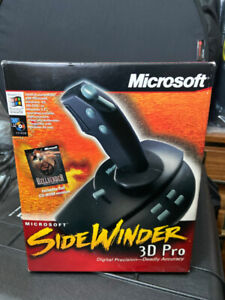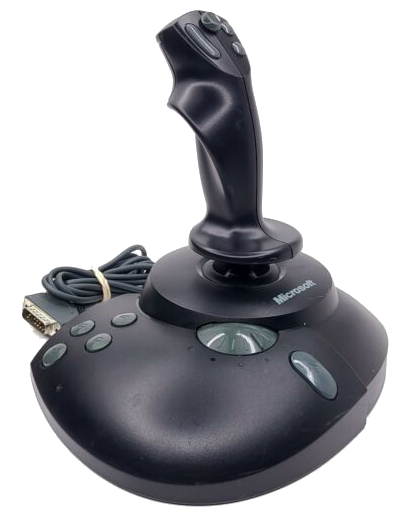 The Sidewinder 3D Pro was Microsoft's first joystick, introduced in 1995. It was a 3-axis (X, Y, and Z or twist), 8-button stick (4 on the stick and 4 on the base) with an 8-way hat. It was designed to be used with any type of game, so the stick itself was not very ergonomic.