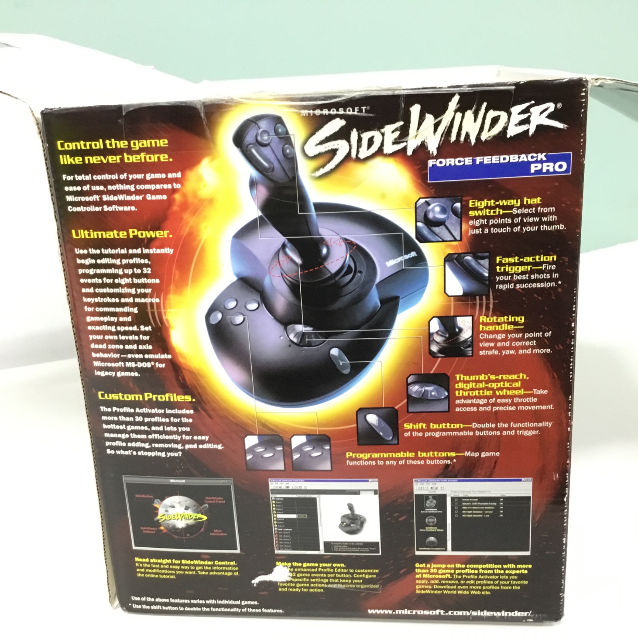 This joystick is based on the same design as the SideWinder Precision Pro but uses force-feedback technology to respond physically to input from software. This means that the joystick shakes and jumps when you perform certain actions (such as firing a machine gun) in games that support the technology.