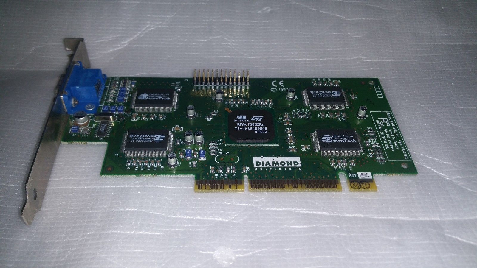 Being a single-slot card, the NVIDIA Riva 128ZX does not require any additional power connector, its power draw is not exactly known. Display outputs include: 1x VGA. Riva 128ZX is connected to the rest of the system using an AGP 2x interface.