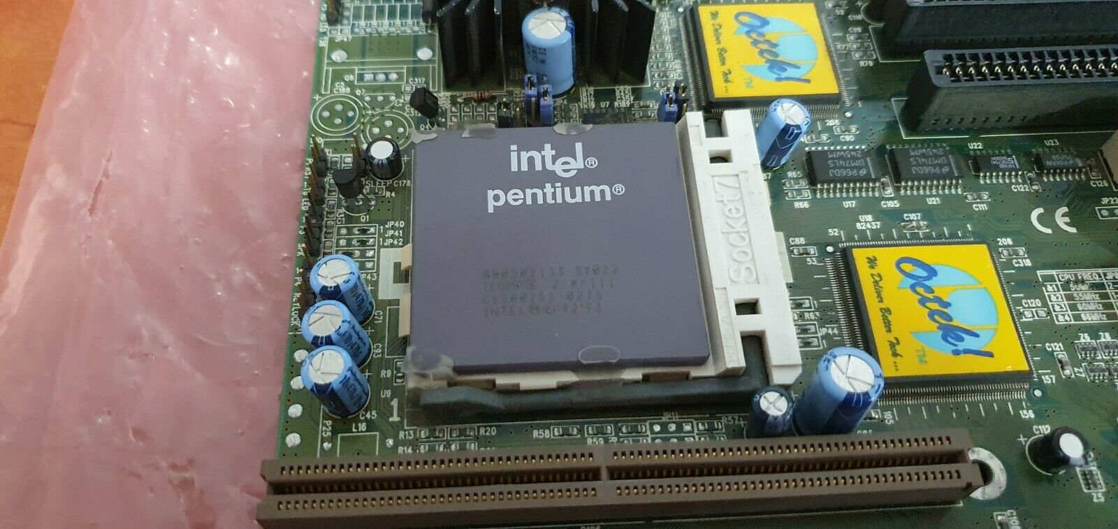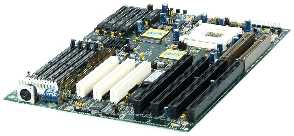 The 72-pin memory slots can use 4 MB, 8 MB, 16 MB, 32 MB with a mix of Fast Page Mode (FPM), EDO DRAM, and SDRAM.