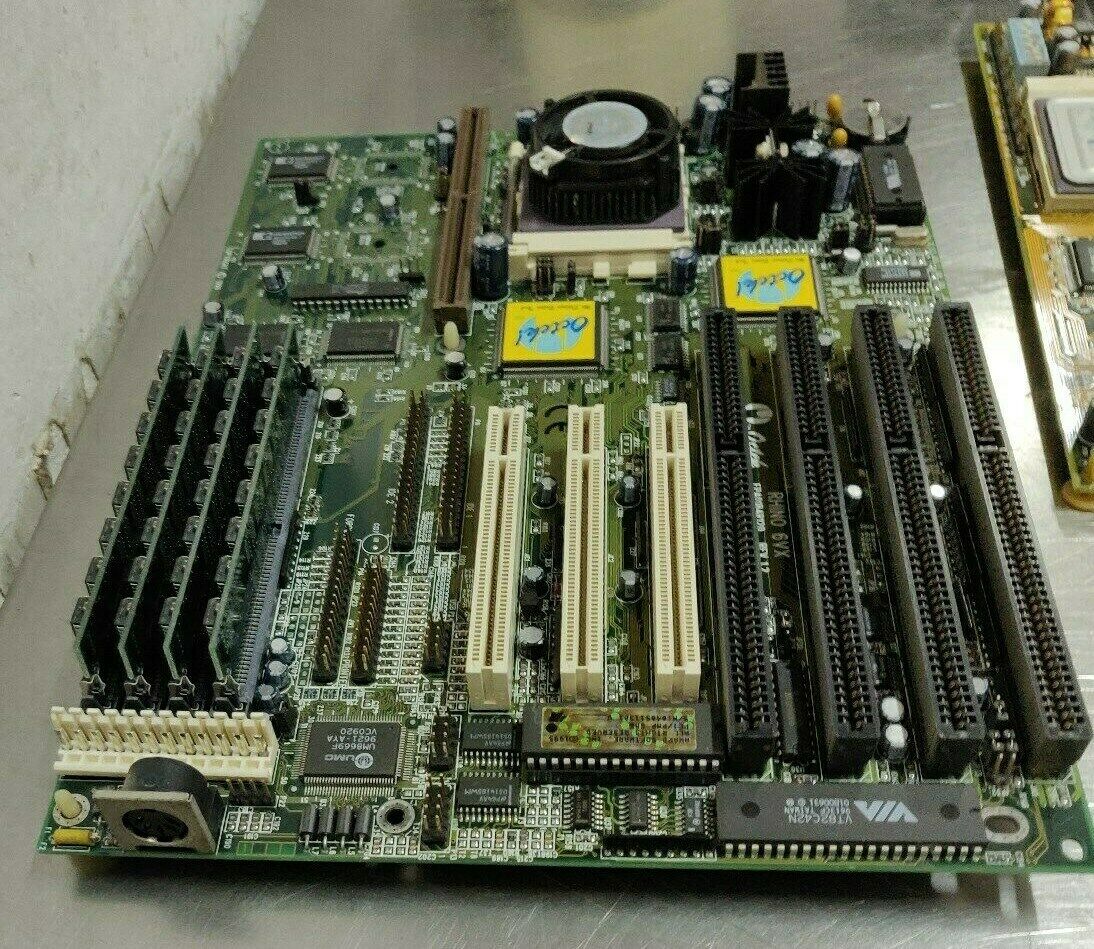 The Rhino 10 is a socket 7 board that supports Pentium 75/90/100/120/133/150/166/180 and 200 MHz, in addition to Intel Pentium MMX CPUs. Also supported are the AMD 5k86 P75-P133 and Cyrix 6x86 P120+/P150+/P166+ CPUs.