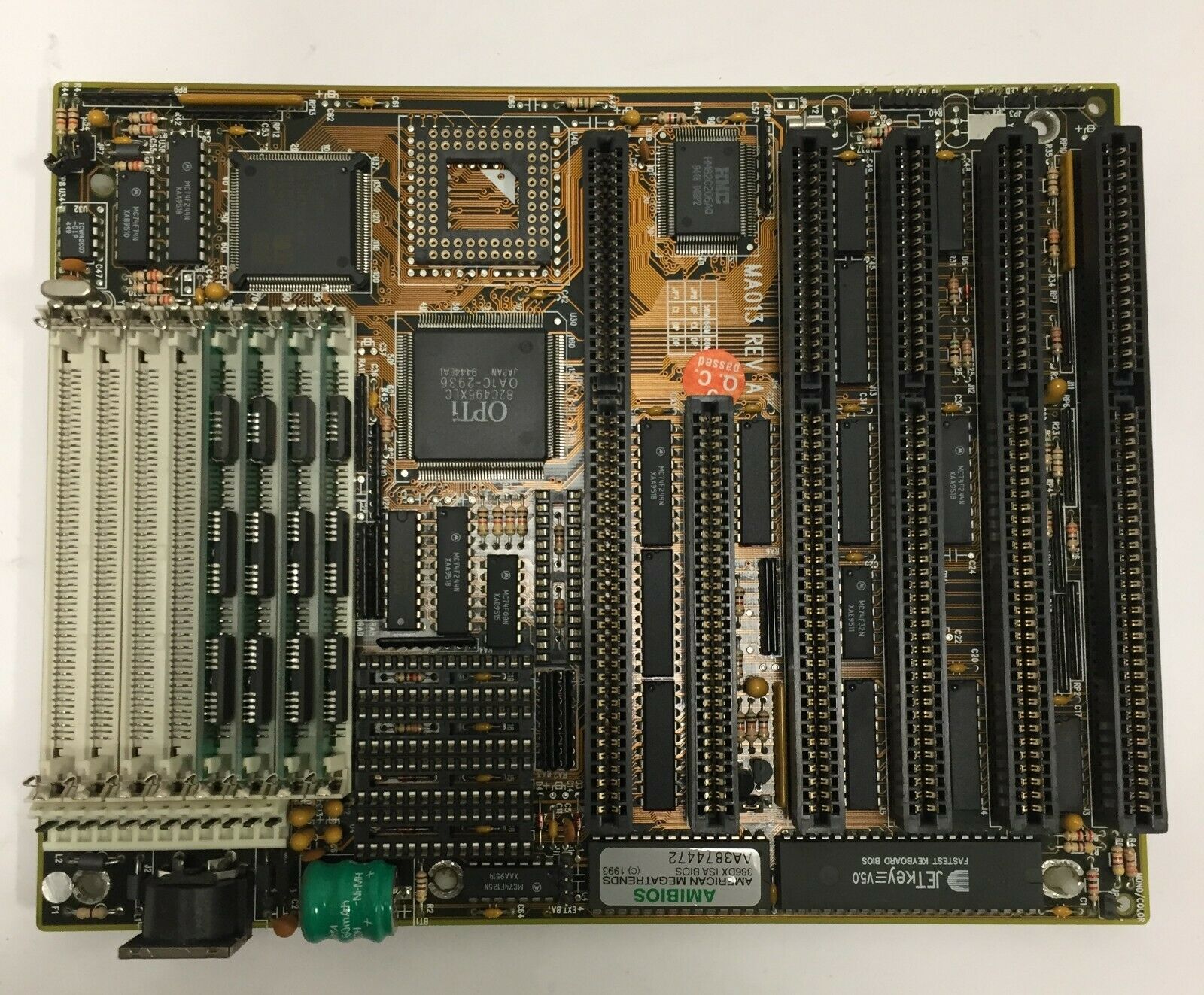 The slots themselves are typically brown and look similar to the old EISA bus slot but are the same length as an ISA 16-bit slot. Unlike VLB, the OPTi bus doesn't have an "ISA" part to the slot. The motherboard did not necessarily have an OPTi chipset to support the OPTi local bus.