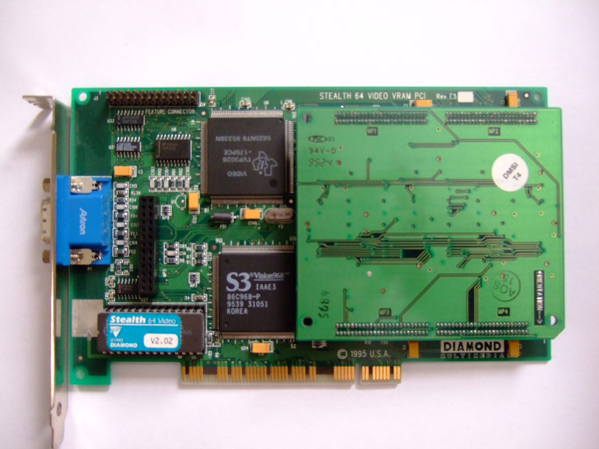 The S3 64V+ was launched in 1995. Like the 868, the 64V+ has a video acceleration engine that can perform YUV to RGB color space conversion and horizontal linear filtered scaling. Trio chips do not support VRAM, and are limited to FPM DRAM and EDO DRAM only.