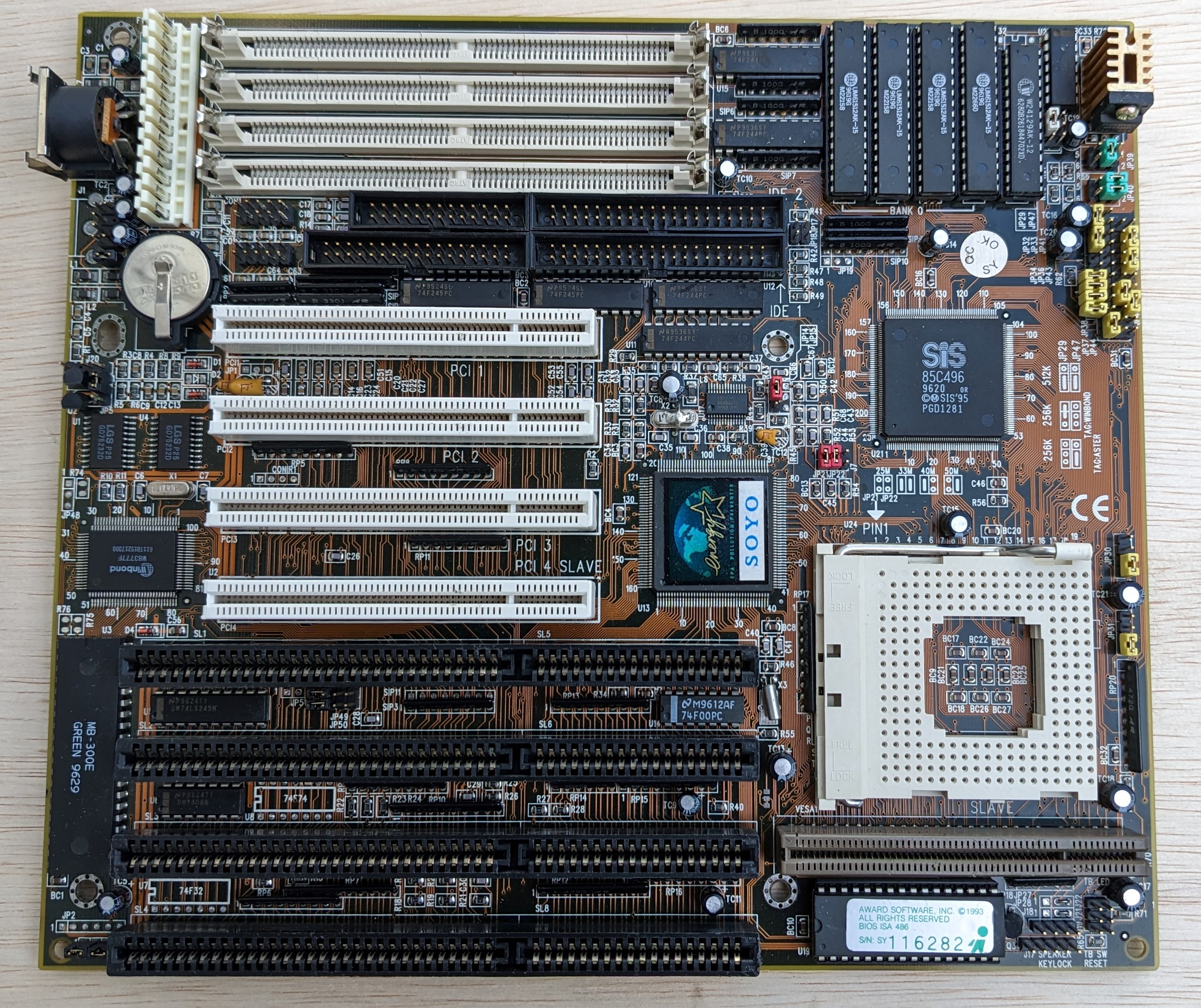 This board also has a COAST (Cache On A STick) slot and 256 KB L2 cache onboard. At least one board revision does not come with the COAST slot header.
