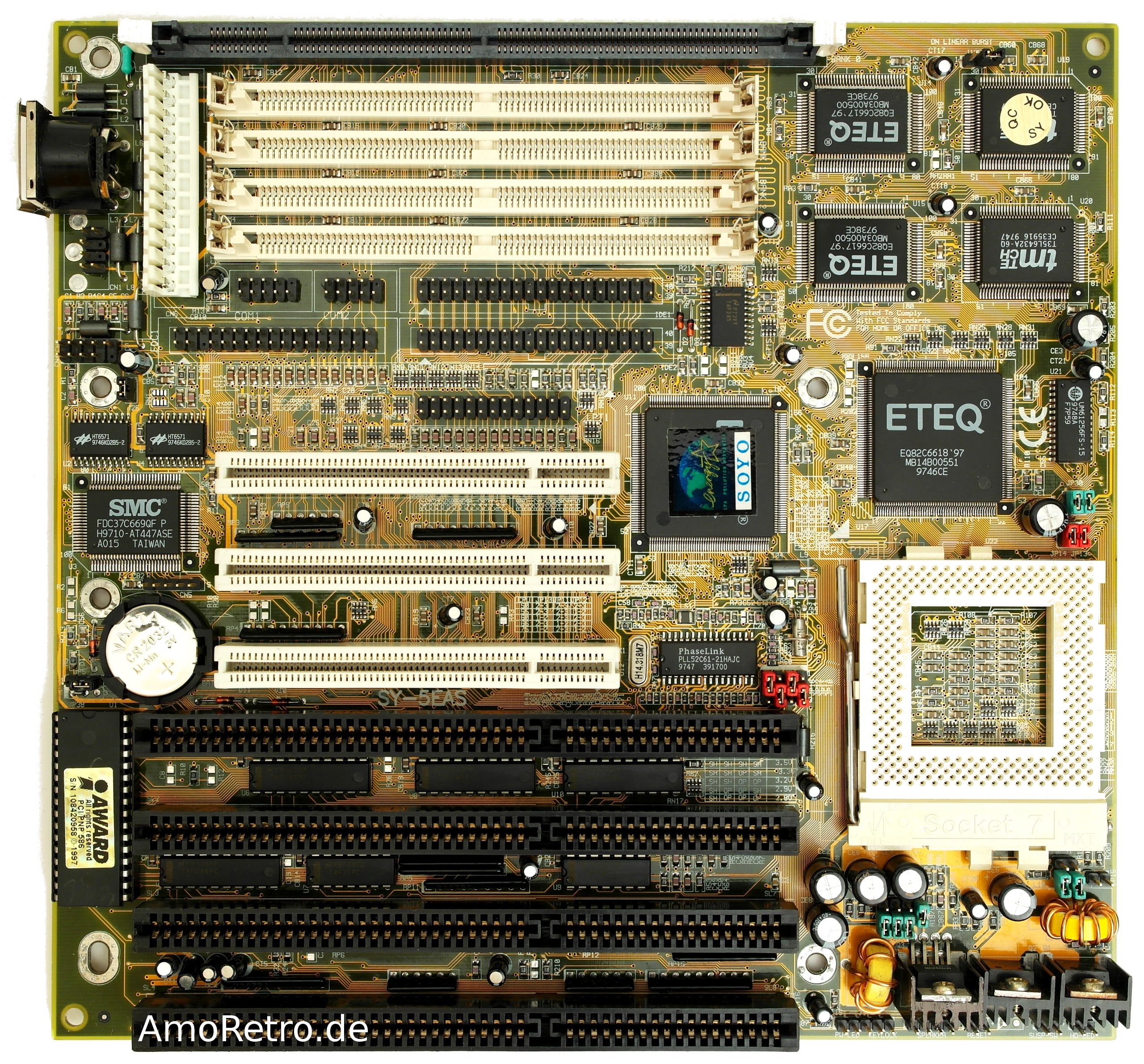 CPU Support: Intel Pentium, AMD K5 and K6, Cyrix 6x86 and 6x86MX.