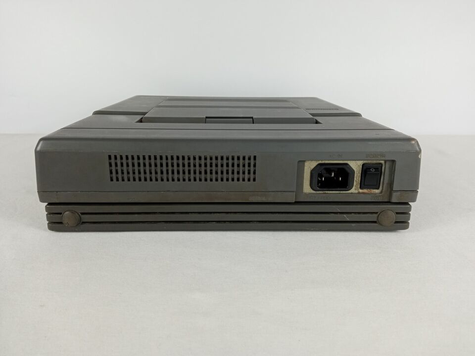 On the rear of the unit were all the ports: a 37-pin DSUB port for an second [external] 3.5" floppy disk drive, 25-pin Centronics parallel printer port, and a 9-pin RGB monitor port and RF-style composite out socket. One slider on the rear would switch from the internal floppy drive to external (if fitted), and another slider switched from the internal LCD to external monitor.