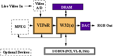 In 1992, Tseng Labs introduced the Video Image Processor, or VIPeR to the ET4000/W32 family of chips. The VIPeR delivered the features necessary to transform a graphics adapter into a fully functional video adapter. It was designed to enhance both live video streams from sources such as a commercial camcorder or VCR, or digital motion video retrieved from a hardware or software compression/decompression engine (CODEC) such as Intel Indeo or Microsoft Video for Windows Video1ä used in .AVI files. The VIPeR intelligently sized and scaled data to make it appear larger or smaller on screen without stealing bandwidth from the CPU. The VIPeR architecture provided numerous benefits to the designer, including optimal use of the IMA port of the Tseng Labs W32 family of graphics chips and easy connection to compression hardware.