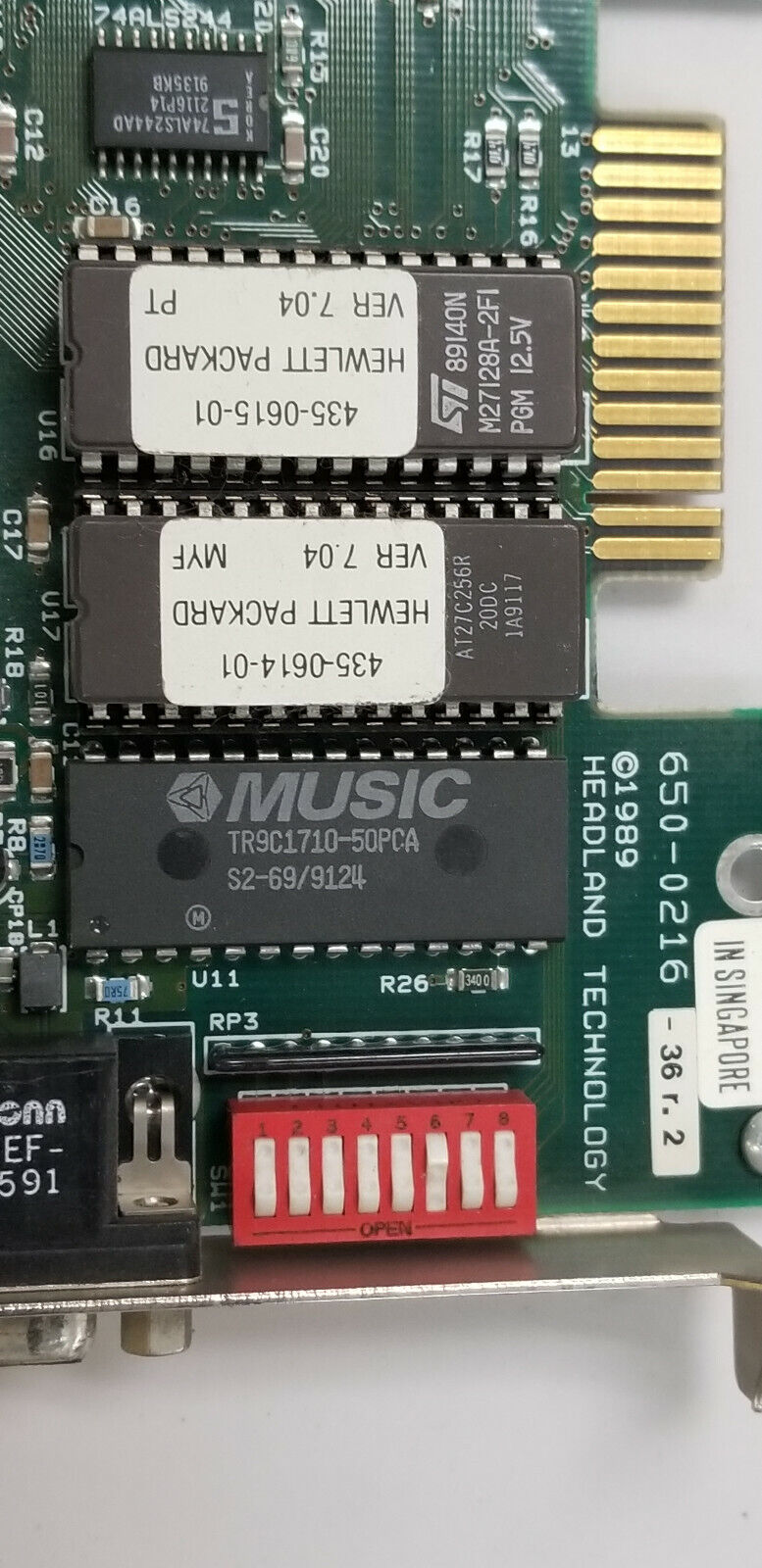 Dusko's card is interestingly when compared to some of the newer revisions of the Hewlett-Packard OEMs in that its DIP switch block is accessible from the rear of the machine where a lot of the newer ones are not (650-0216-37 is an exception that returns to this).