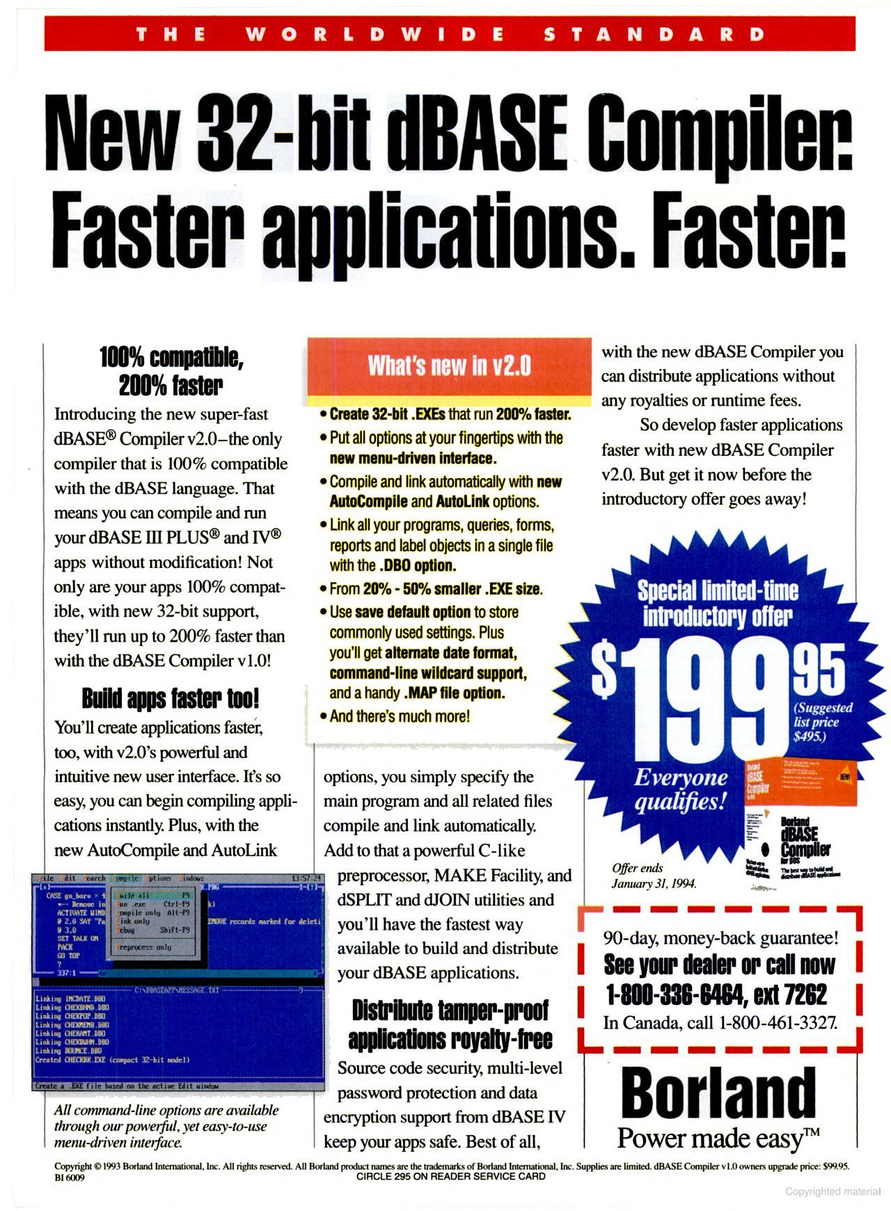 In September 1991, Borland International bought out Ashton-Tate, including their dBase and InterBase databases. dBase had been the market leader in the world of databases for many years. After the buyout, Borland committed to continuing and expanding the power of the XBase standard with new versions of dBase and InterBase.