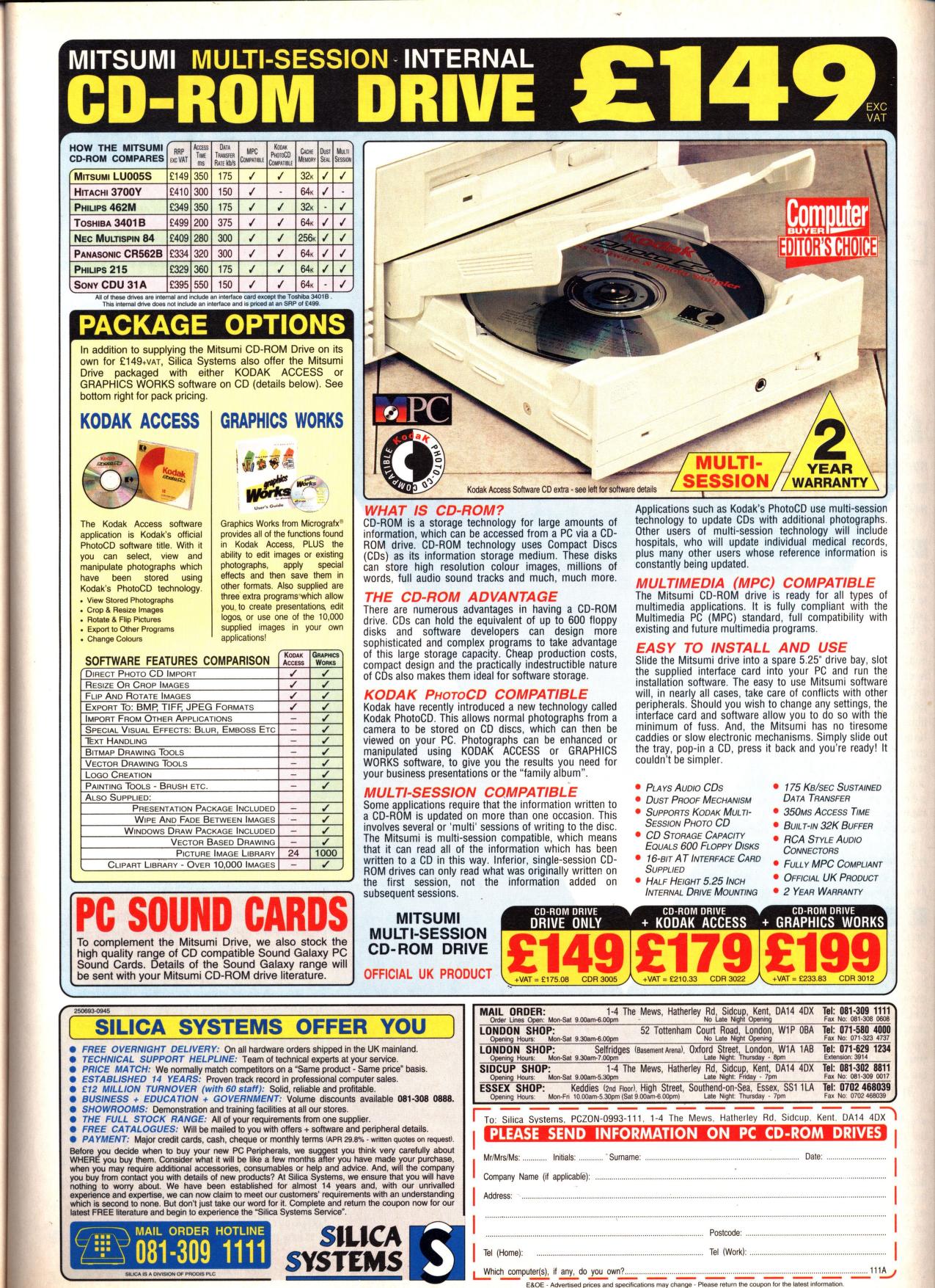 Twos adverts by Creative Labs: (1) Multimedia Upgrade Kit (Jun 1992), (2) Double-speed CD-ROM drive (Oct 1993), and (3) below, an early advertisment in the UK printed media for CD-ROM drives (Sep 1993)