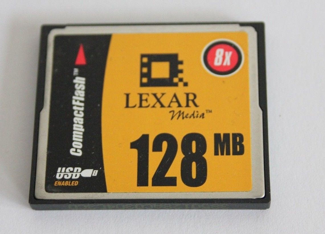 The first card, the Lexar 128 MB capacity is the Lexar CF128-231 card. The speed is indicated as being 8x (CF cards speed uses the same 'x' rating as CD-ROMs, where 1x was 150 KB per second. So this being 8x means its maximum transfer rate is 1.17 MB per second (8 x 150 KB = 1200 KB = 1.17 MB).