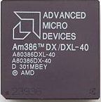 AMD produced a rival of the 80386 called Am386. It was 100% pin- and register-compatible with the Intel 80386 (so it could run in all of its modes) but was designed to compete with the early 486s at a much more attractive price point. It was finally launched in March 1991 after numerous delays, not least being litigation with Intel over whether AMD had the right to the 386 (AMD didn't steal Intel's microcode - they actually reverse-engineered the Intel chip which was legal).