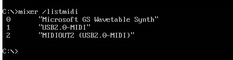 Running mixer /listmidi displays a list of all the MIDI interfaces that have been detected by your computer.