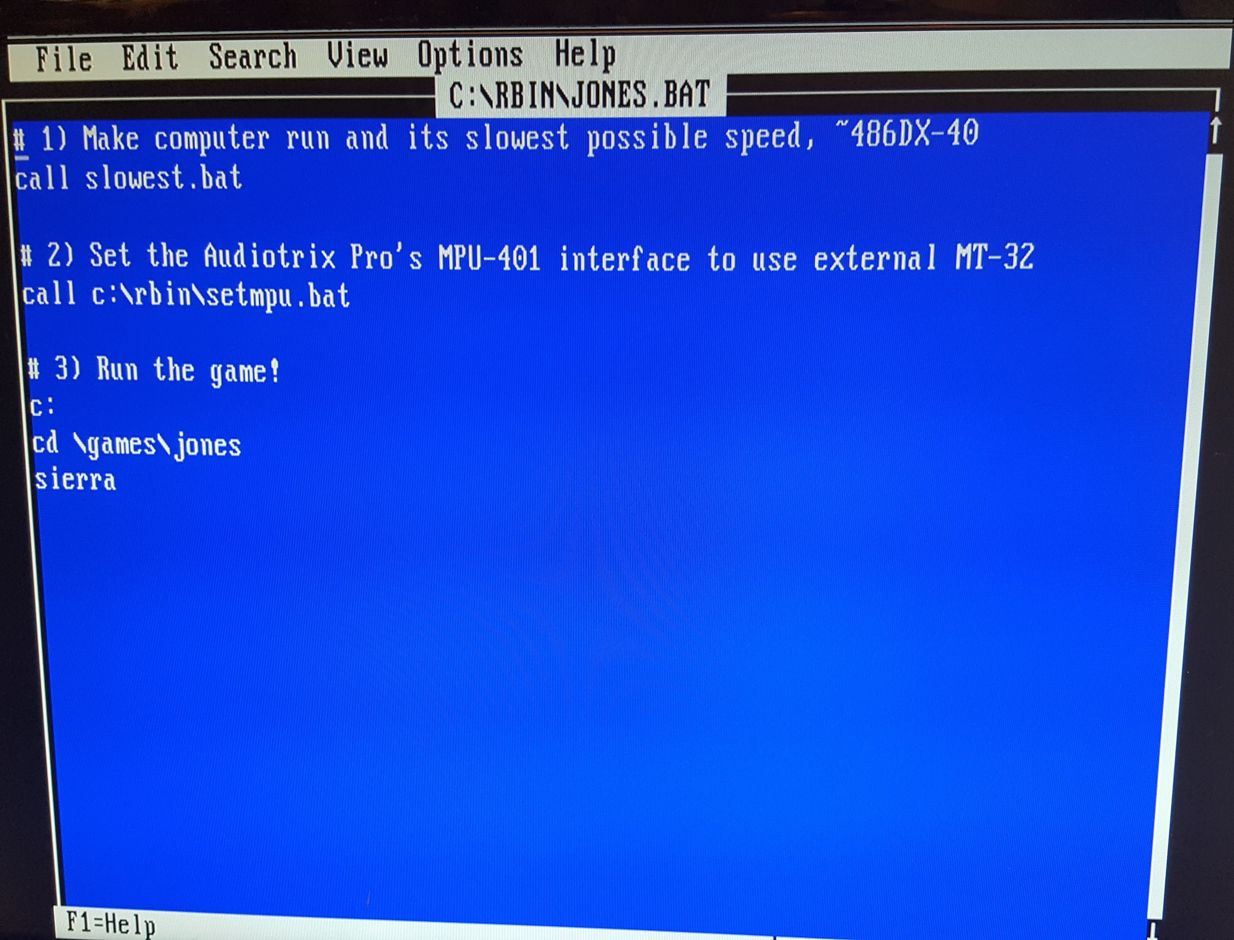Anyway, to make my DOS gaming as easy as possible, I write a simple batch file for each game that will do 3 things: