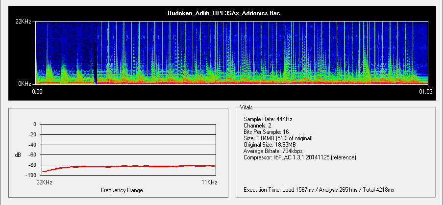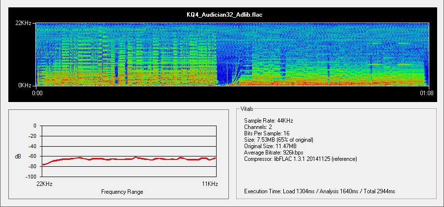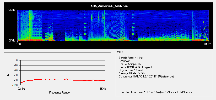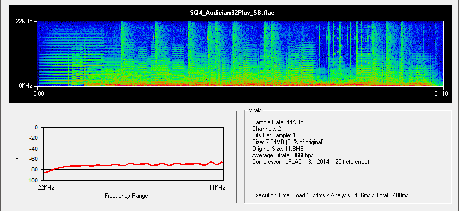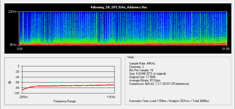Despite the above recordings being done from the Speaker Out jack, the card's output is surprisingly clear, averaging a -68 dB signal-to-noise ratio (SnR). The Line Out would no doubt be much better, but compared to a lot of other sound cards this is excellent.