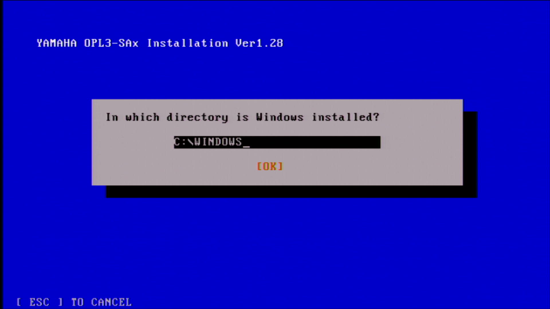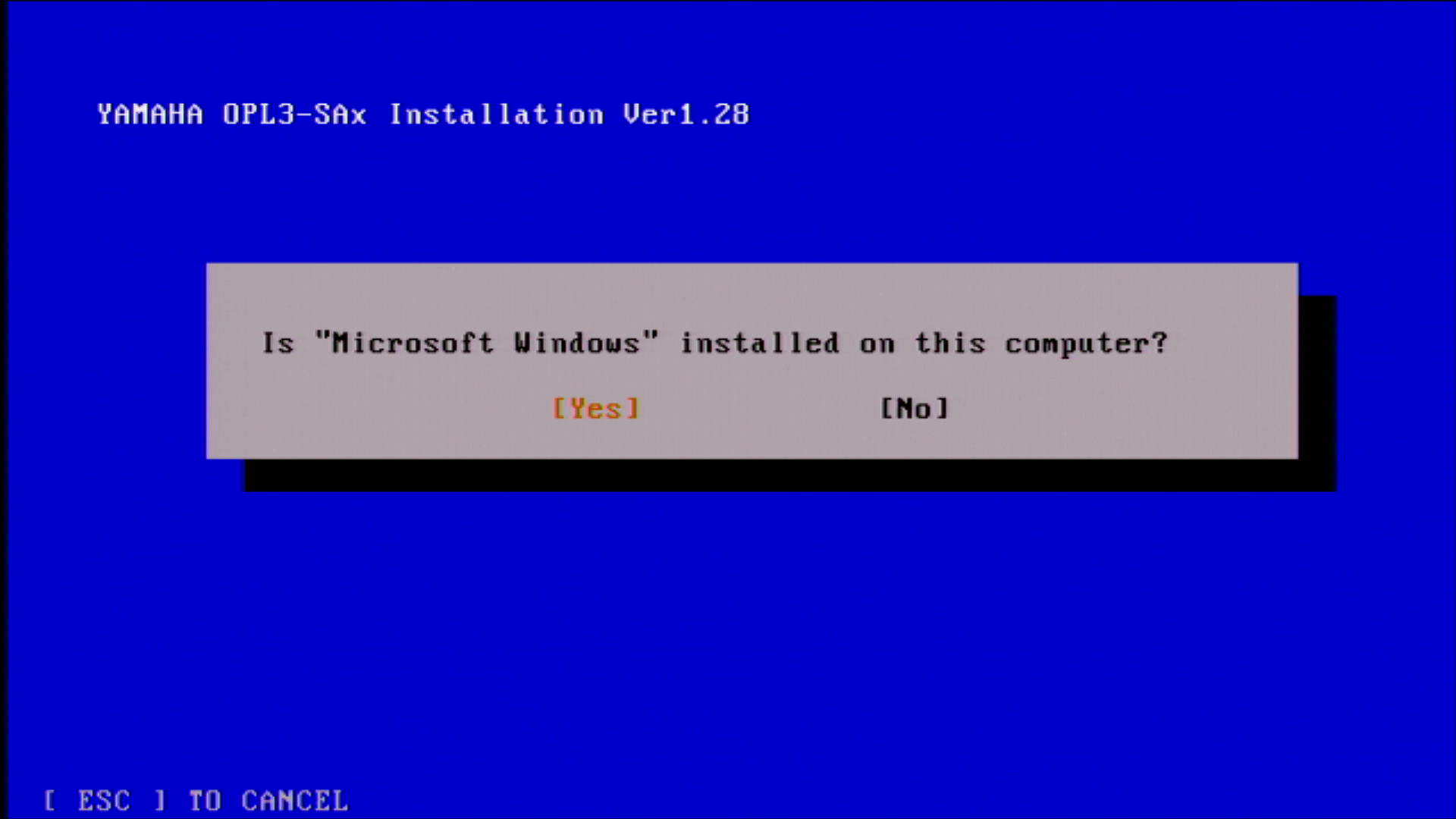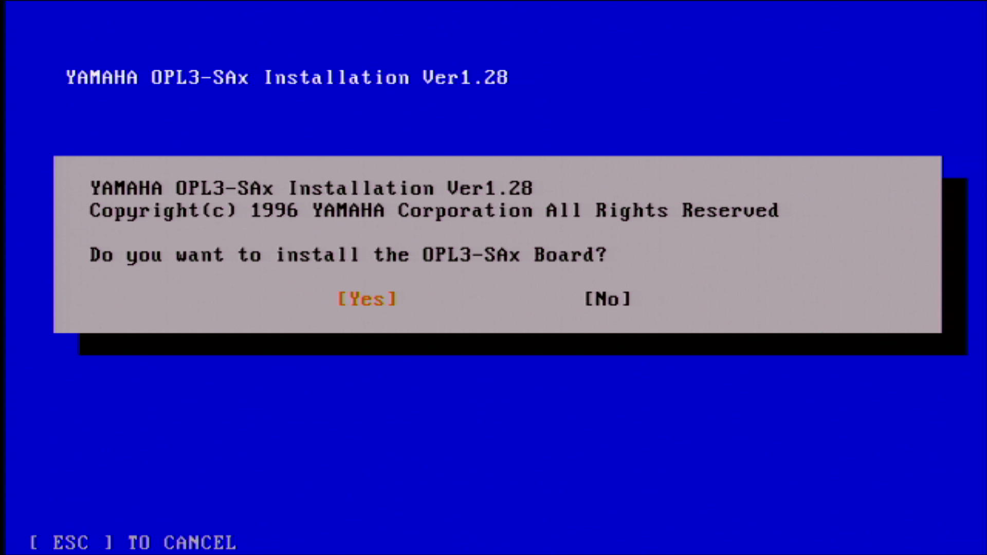 In the Windows software drivers, it installs the Yamaha OPL3-SAx Configuration tool under Control Panel, which allows you to switch between an external MIDI synth (or installed wavetable daughterboard) and a "SoftSynth" that runs well with Windows 95/98 games or games that run in a DOS window. I won't be testing this SoftSynth as part of this review, instead focussing on a pure DOS installation.