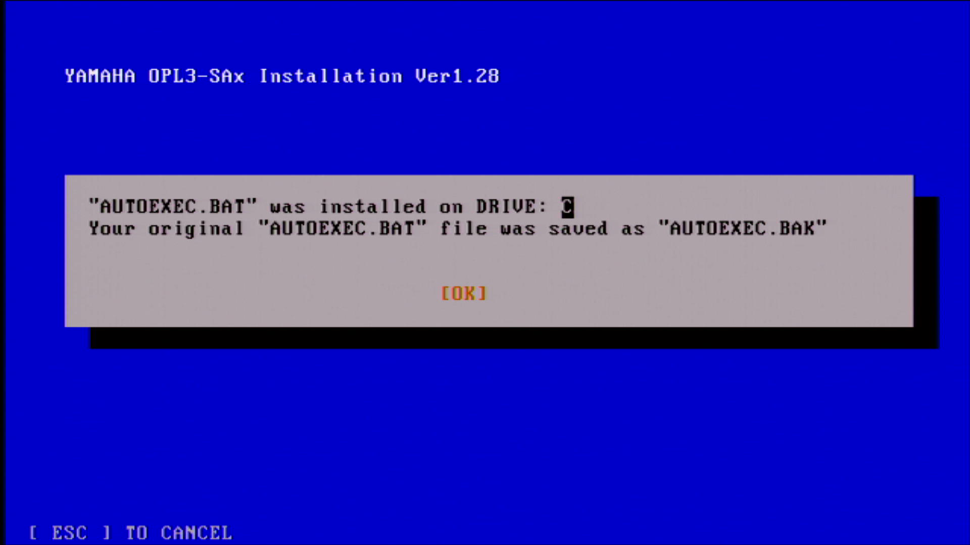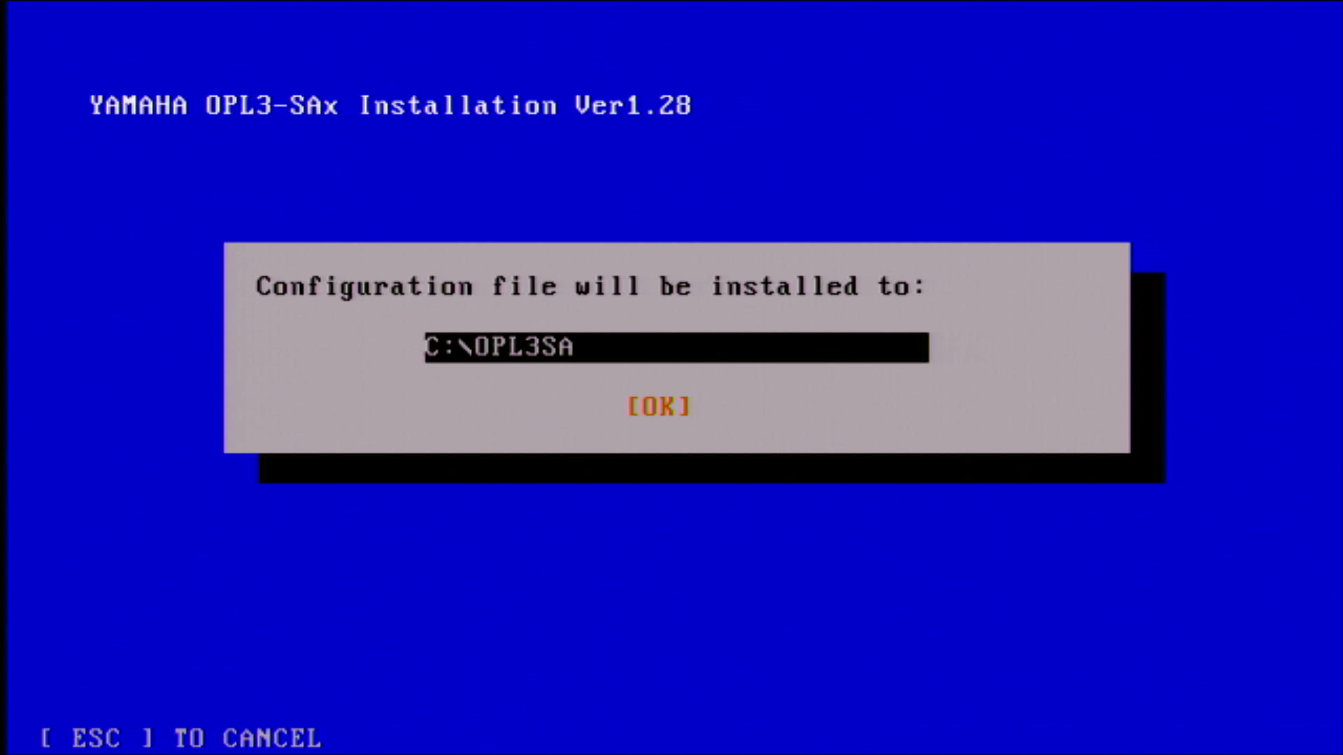 Once you're ready, highlight the [ O K ] option and hit <Enter>. The file OPL3SA.INI will be updated with the settings you chose. You would then run SETUPSA /s (or add it to AUTOEXEC.BAT) to initialise the card.
