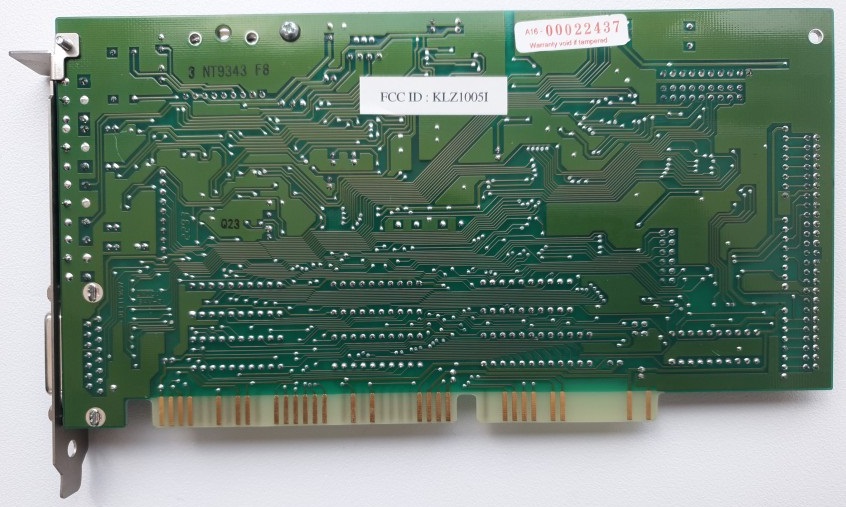 The card has an FCC ID of KLZ1005I, is a version 1.0 card and is dated 1993 on the silkscreen. The newest soldered-in component with a date stamp is the Crystal chip which is week 33 of 1993, putting its manufacture sometime during 16th-22nd August that year.