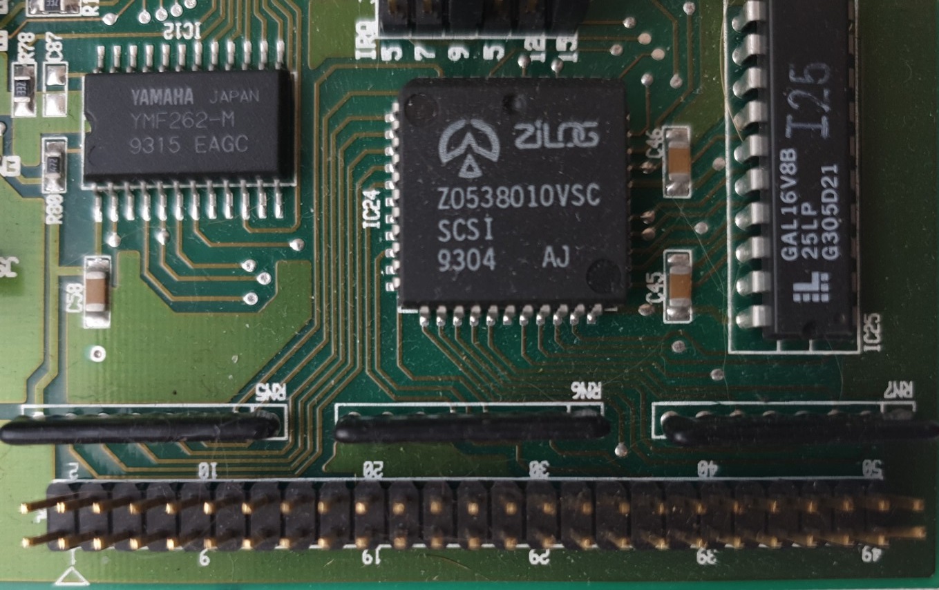 The card's SCSI CD-ROM interface is implemented using a Zilog Z0538010 chip, which is a clone of the NCR 5380. This is the same identical set up as found on the MediaVision PAS16.