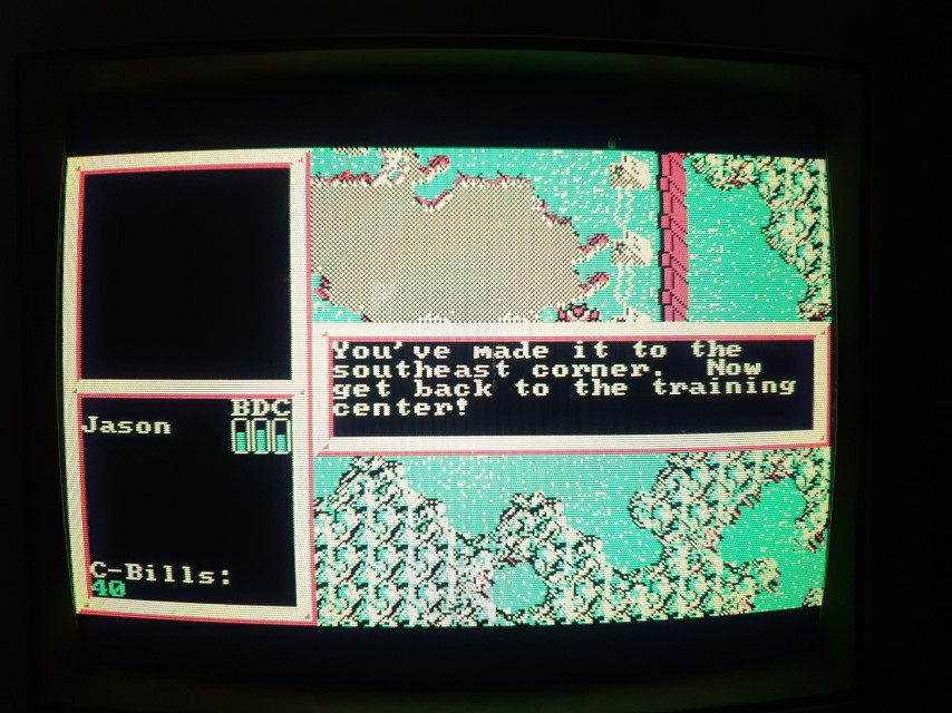 The DOS version of the tabletop war game was written by Westwood Studios and published by Infocom in 1988. CGA was its lowest graphical mode, also offering EGA and MCGA/VGA. The CGA option ran in Mode 04h (320 x 200 in 4 colours), using palette 0 with the four colours of black (#000000), green (#55ff55), light-red (#ff5555), and yellow (#555555).