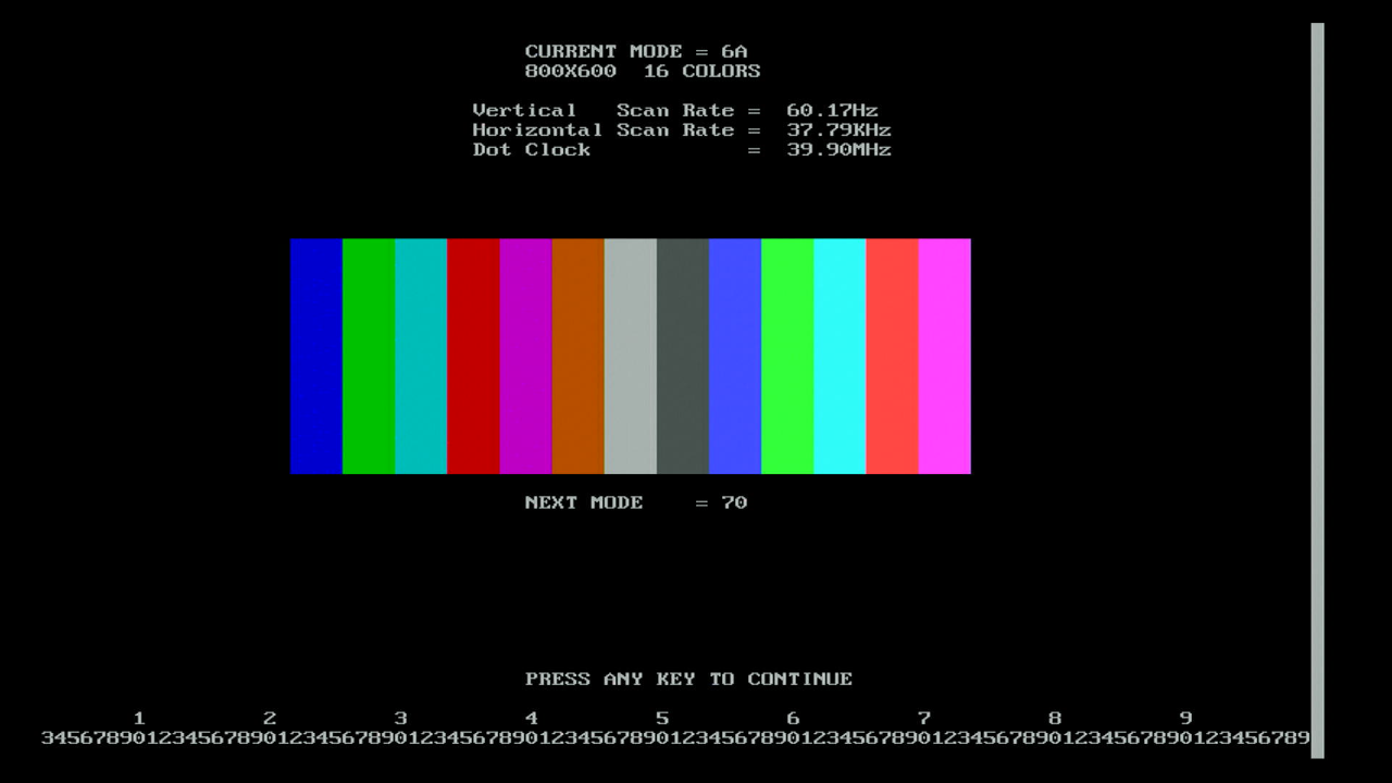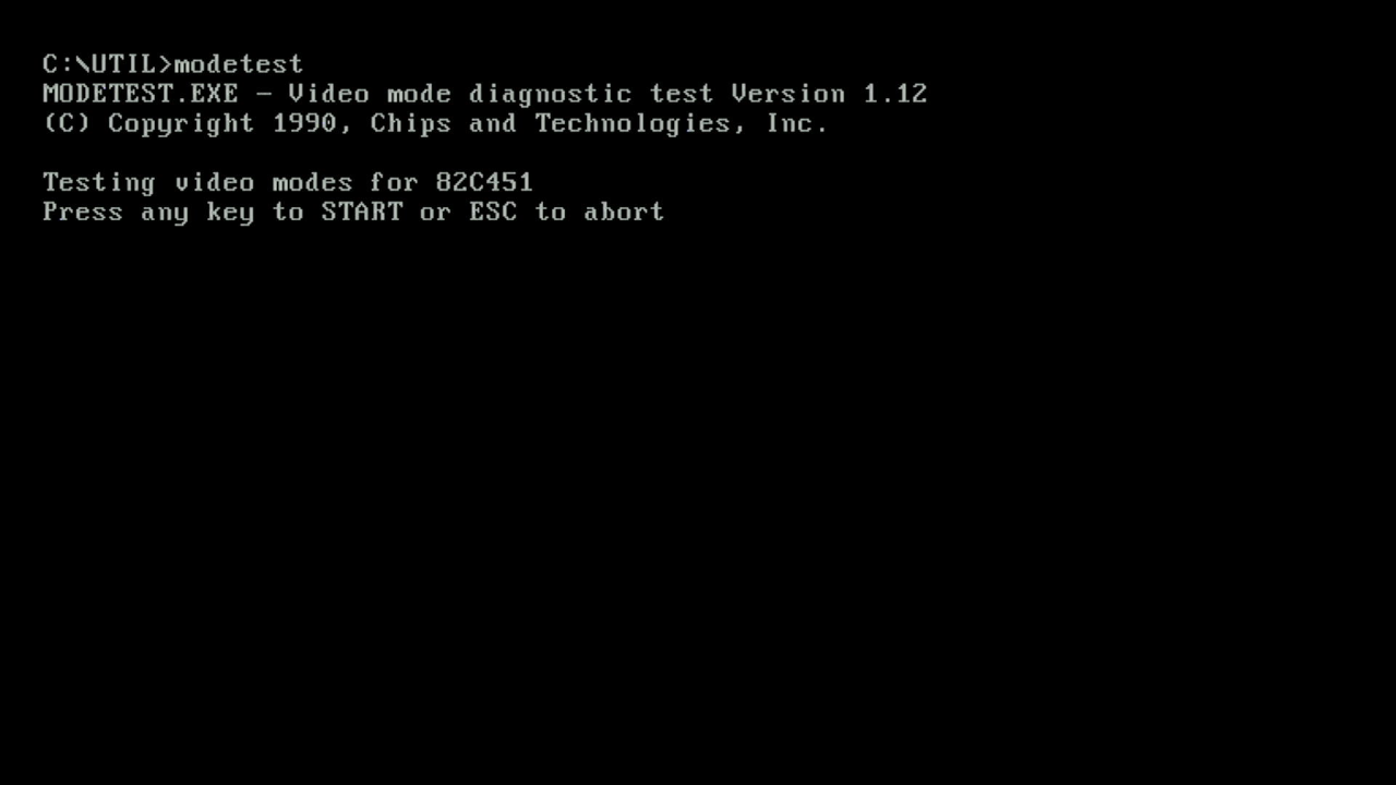 | MODETEST.EXE | A full-featured program that takes you through the various text and graphics modes the card supports. |