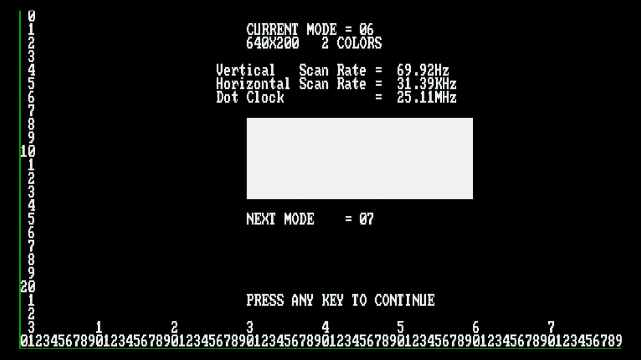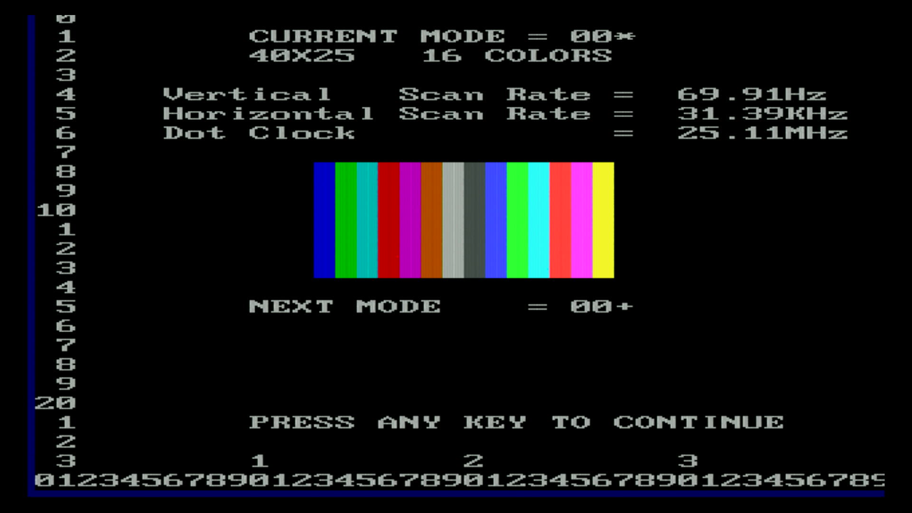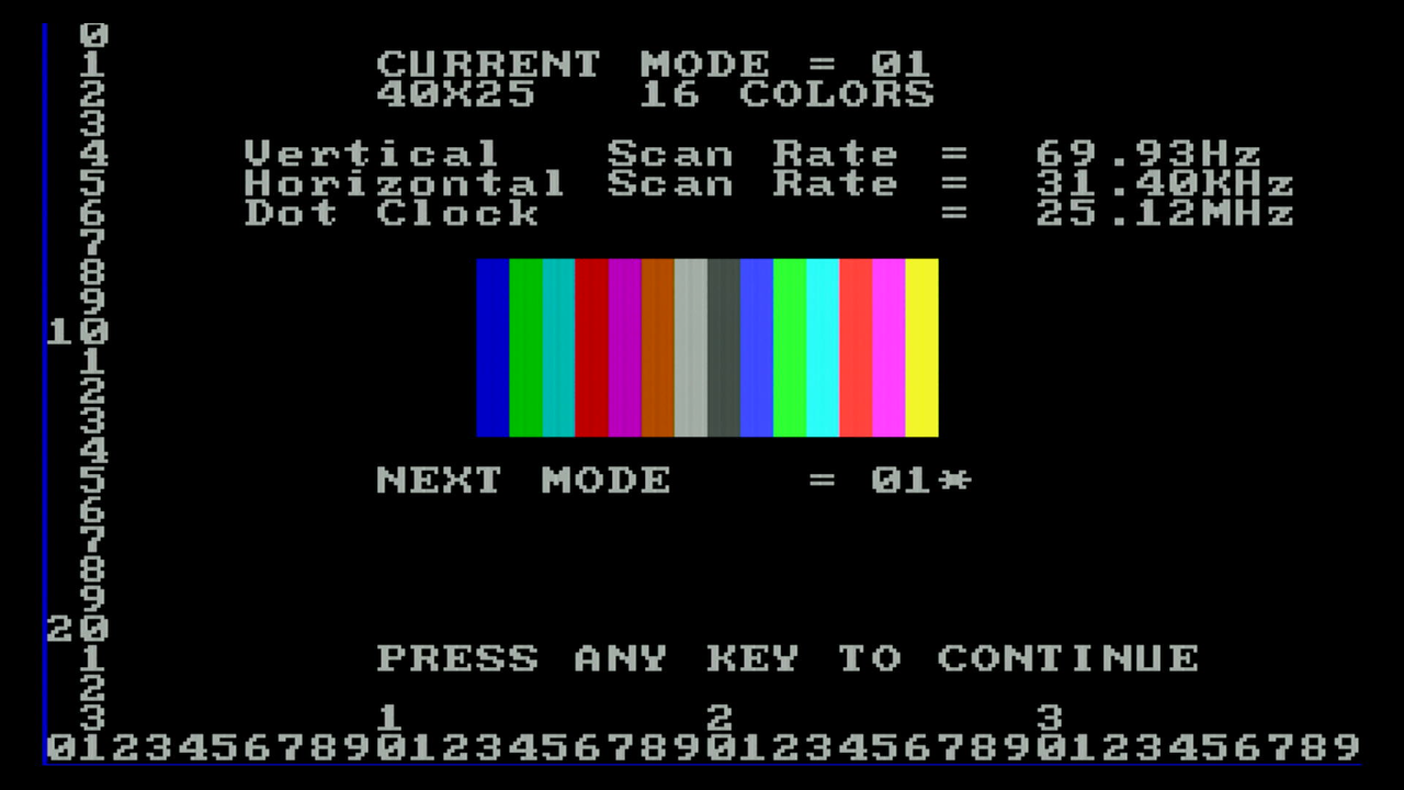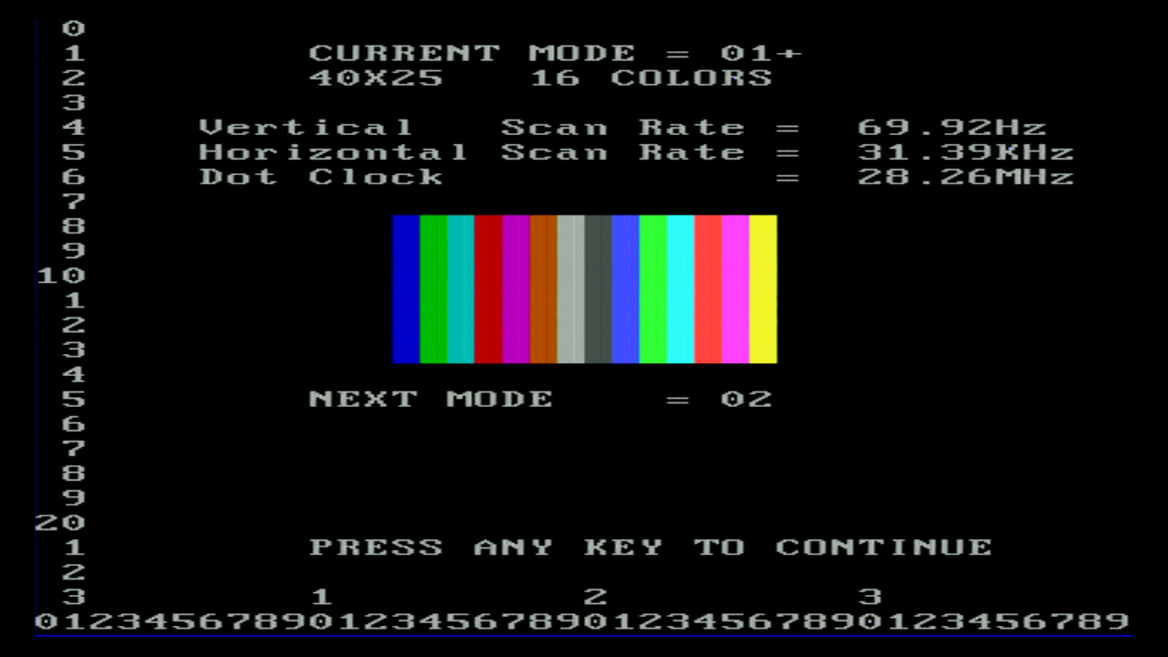 first, as I want to test the various video and text modes supported, plus the emulation of MDA, Hercules, CGA and EGA.