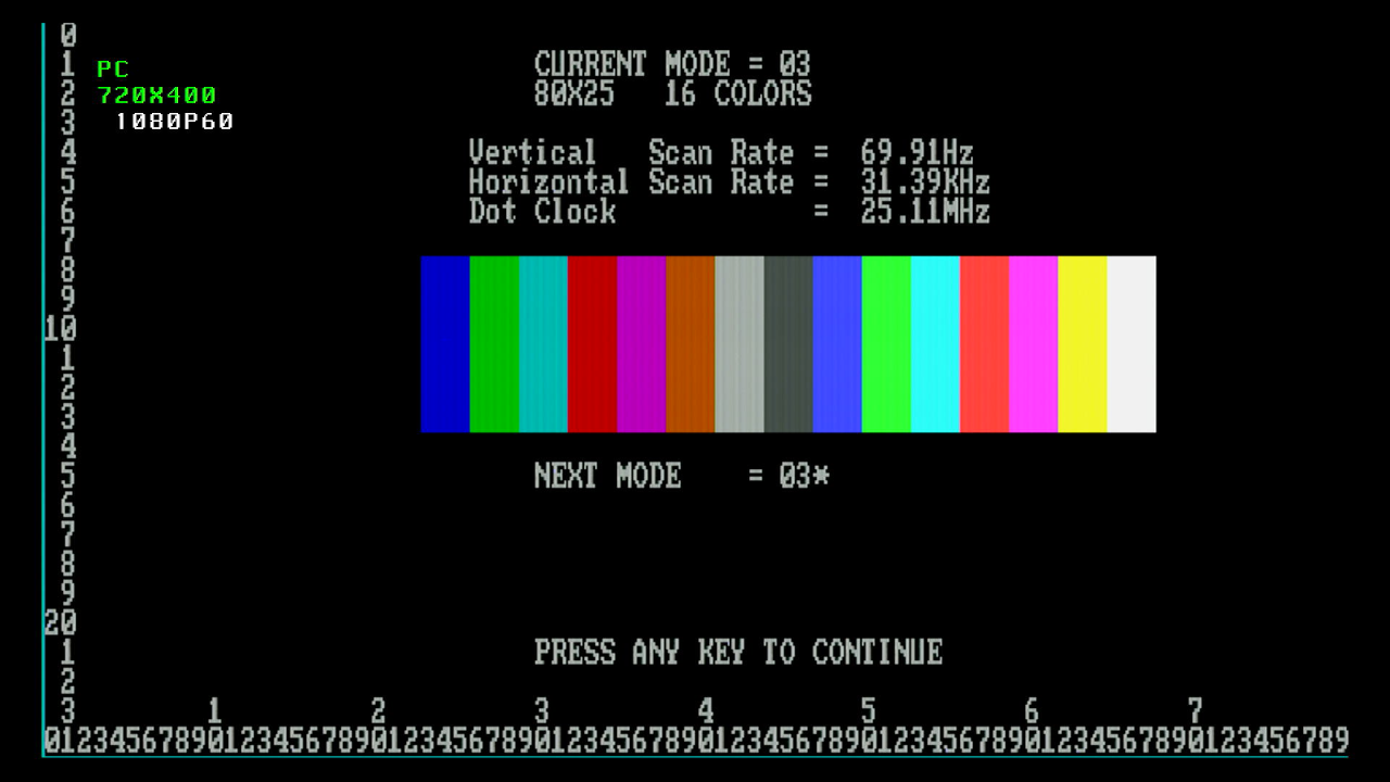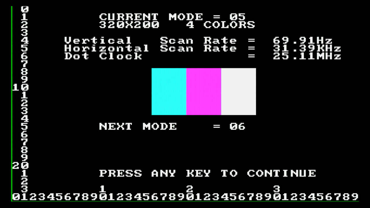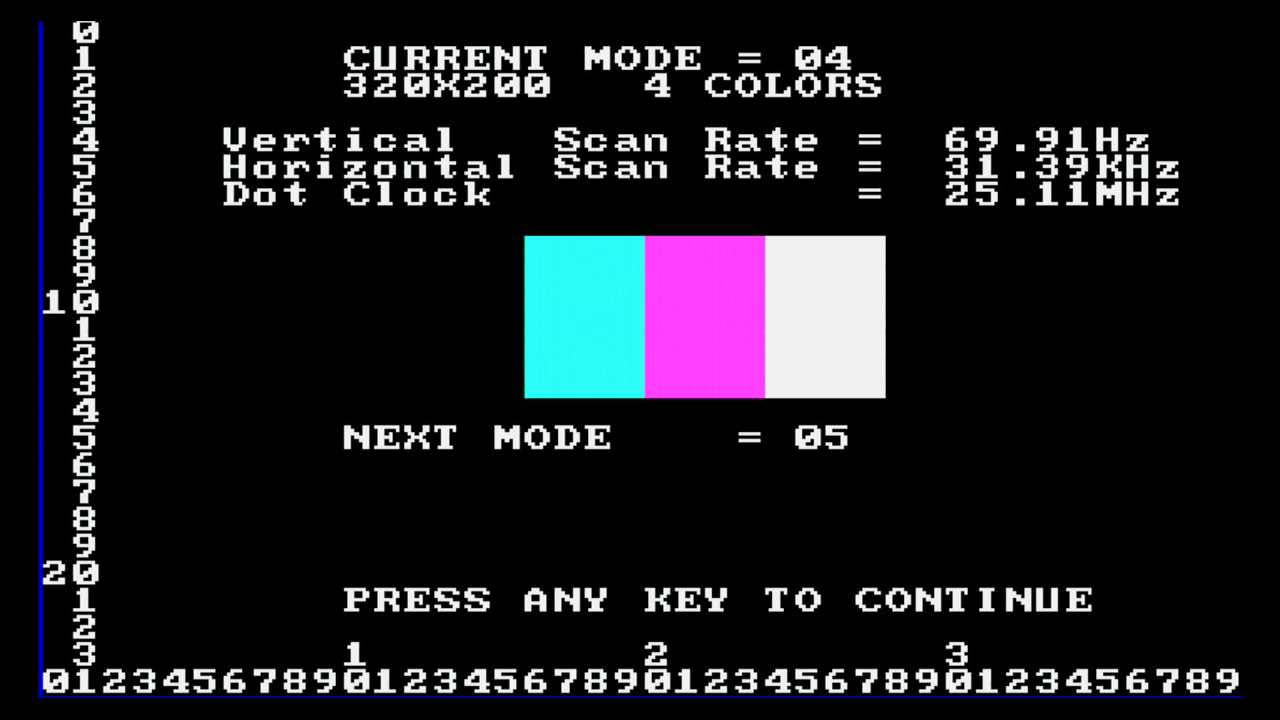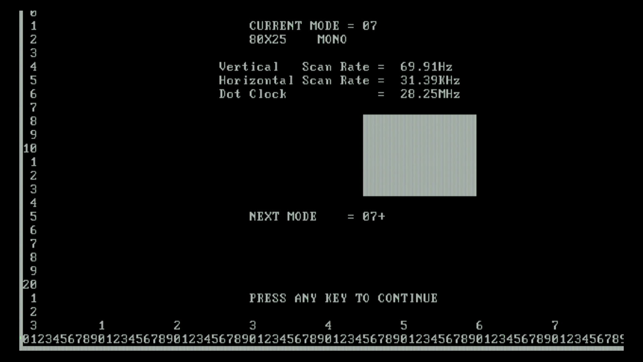 first, as I want to test the various video and text modes supported, plus the emulation of MDA, Hercules, CGA and EGA.