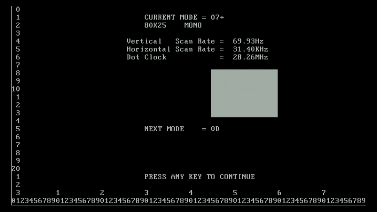 - Mode 7 (MDA/Hercules/Mono EGA 9x14 character block)