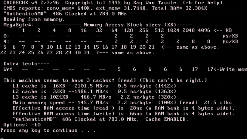 I then used CacheChk to verify the onboard Level 2 cache size and get some memory performance info:
