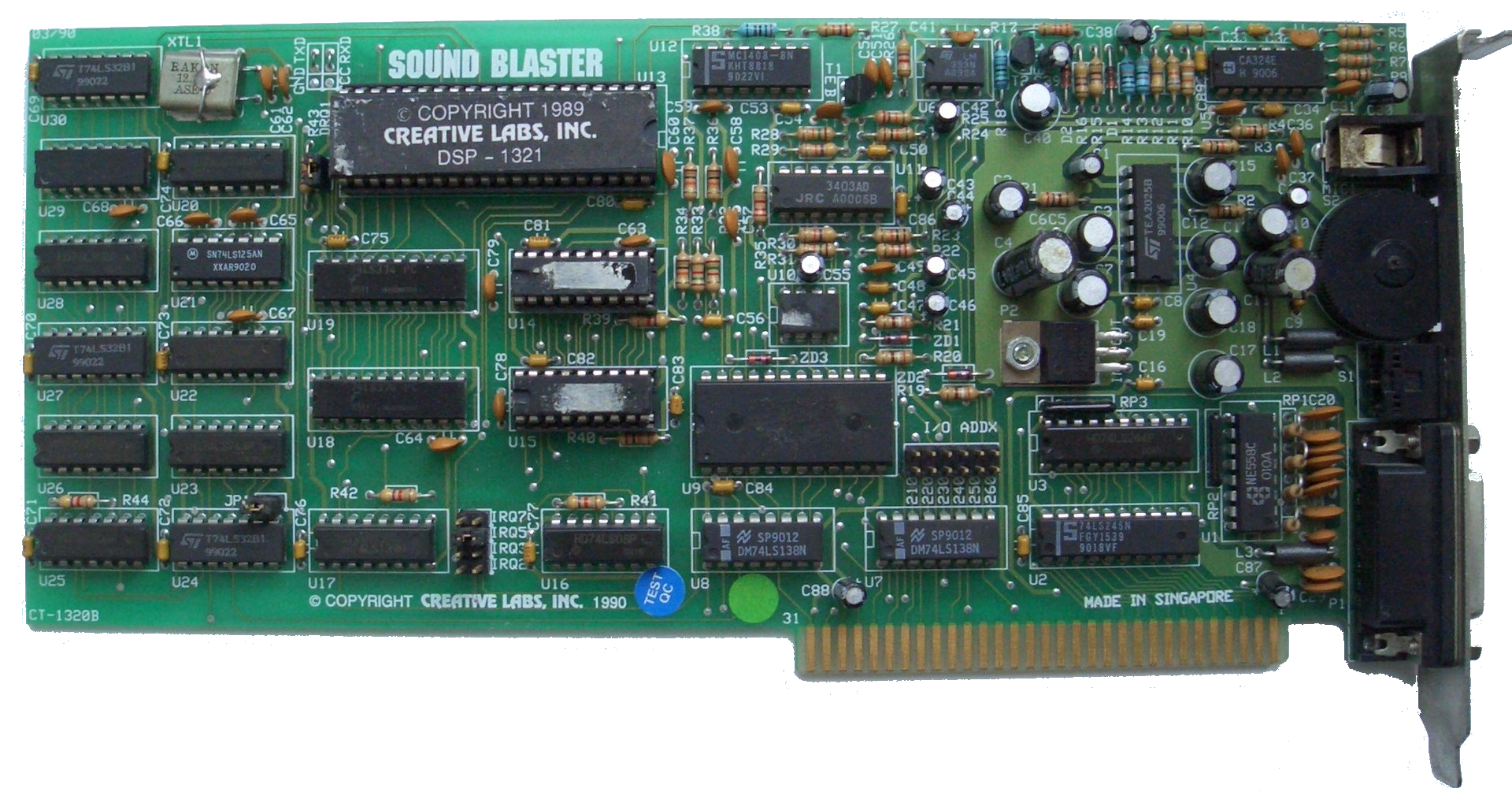 The CT1320 is sometimes called "Sound Blaster 1.5". CMS chips were now socketed in order to be more economical for Creative Labs. CMS chips optional. Sound Blaster 1.5 came with DSP version 2.00.