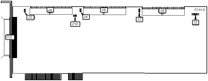 Jumpers J2, J5 and J7 enable other adapter cards on different computers to share devices on channels