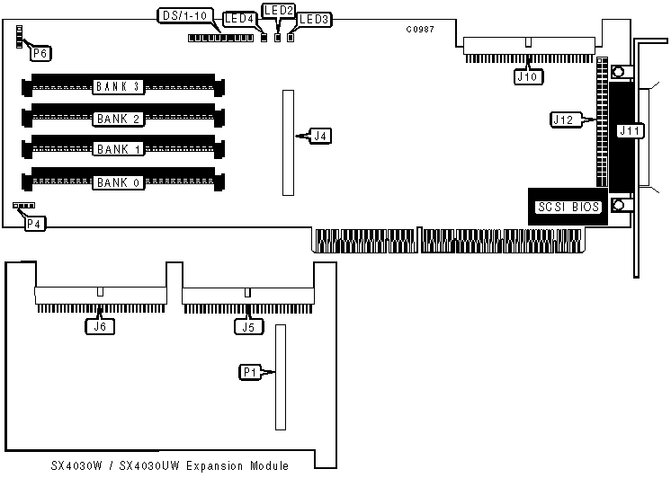 SX4030W/2 and SX4030UW/2. The first two modules have a single SCSI connector (J5). This