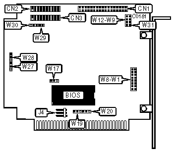 W1 through W4 are used to configured the drive type as supported by the BIOS. To support most of the drives on the market, there are several different BIOS’s offered. The different BIOS drive type tables are listed with the OMTI 5510; The settings are the same for the 5520 and the 5527