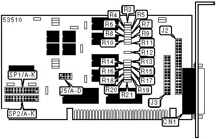 Note: Terminating resistors are usually only needed if the card is installed in systems using high baud rates. If terminating resistors are required, insert them into the listed locations. Size and type of resistor are unidentified. |