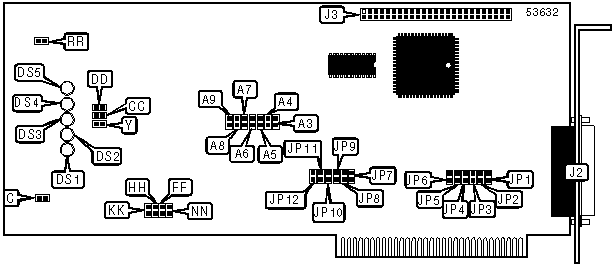 A total of 128 base address settings are available. The jumpers are a binary representation of the decimal memory addresses. Jumper A9 is the Most Significant Bit and jumper A3 is the Least Significant Bit. The jumpers have the following decimal values: A9=512, A8=256, A7=128, A6=64, A5=32, A4=16, A3=8. Turn off the jumpers and add the values of the jumpers and convert to hexadecimal to obtain the correct memory address. (Off=0, On=1)