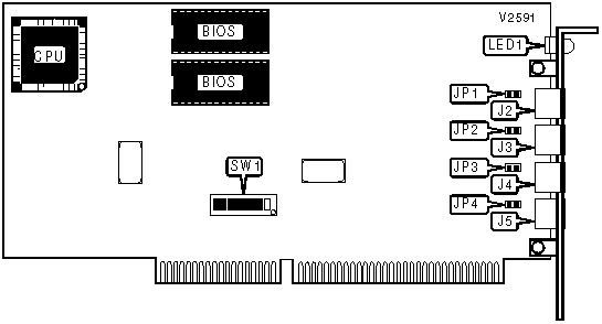Note: A total of 255 BIOS address settings are available. The switches are a binary representation of the decimal memory addresses. SW1/8 is the Most Significant Bit and switch SW1/1 is the Least Significant Bit. The switches have the following decimal values: SW1/8=8,388,608, SW1/7=4,194,304, SW1/6=2,097,152, SW1/5=1,048,576, SW1/4=524,288, SW1/3=262,144, SW1/2=131,072, SW1/1=65,536. Turn off the switches and add the values of the switches that are off to obtain the correct memory address. (Off=1, On=0)