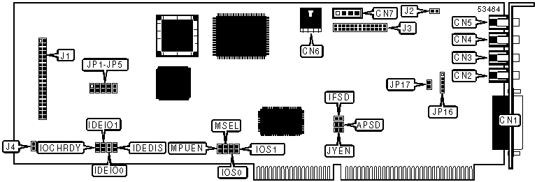 Game/MIDI port, IDE interface connector, speaker out, line out, line in, microphone in, CD-ROM audio in (2), PC speaker connector, wavetable connector