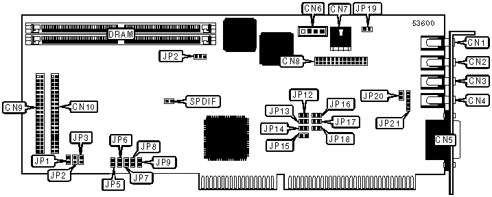 CD-ROM interfaces (2), microphone connector, line in connector, line out connector, speaker out connector, game/MIDI port, PC internal speaker, CD-ROM audio in connectors (2), feature connector |